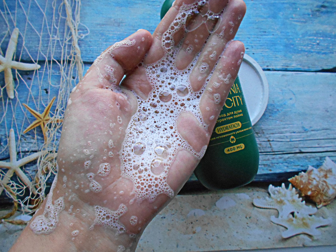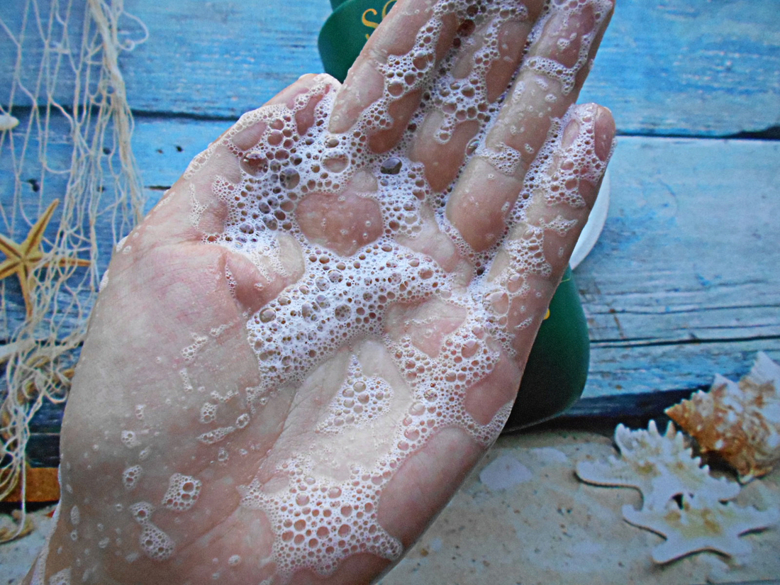 Без мочалки — при вспенивании руками — гель хорошо пенится. Пена получается достаточно плотная.