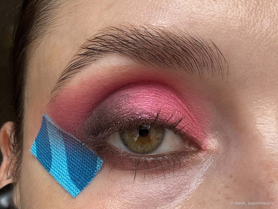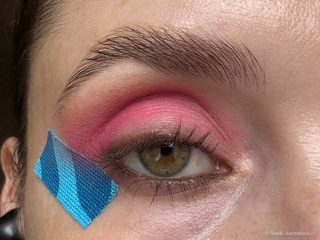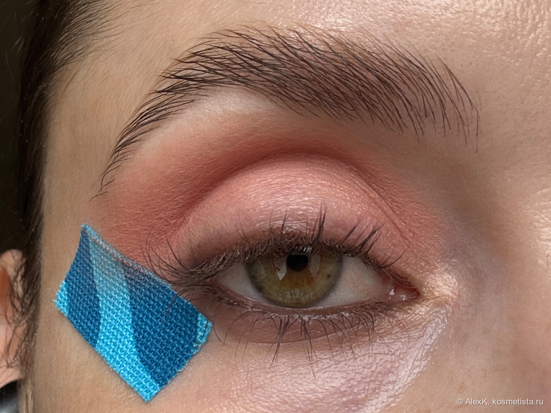 Клею тейп во внешнем уголке глаза. Дальше буду использовать верхний ряд палетки Тамми Танука Смущенный Улыбчивый Аксолотль.