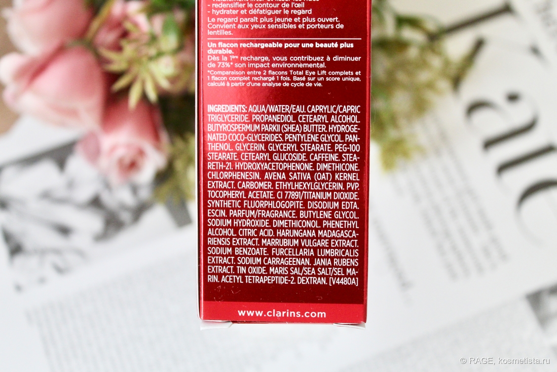 Либо сработал эффект низкой базы, либо Clarins Total Eye-Lift Lift-Replenishing Eye действительно шикарно разглаживает кожу и убирает морщинки. Скорее всего, эффект здесь действует, пока пользуешься кремом, но эффект есть, и это главное.