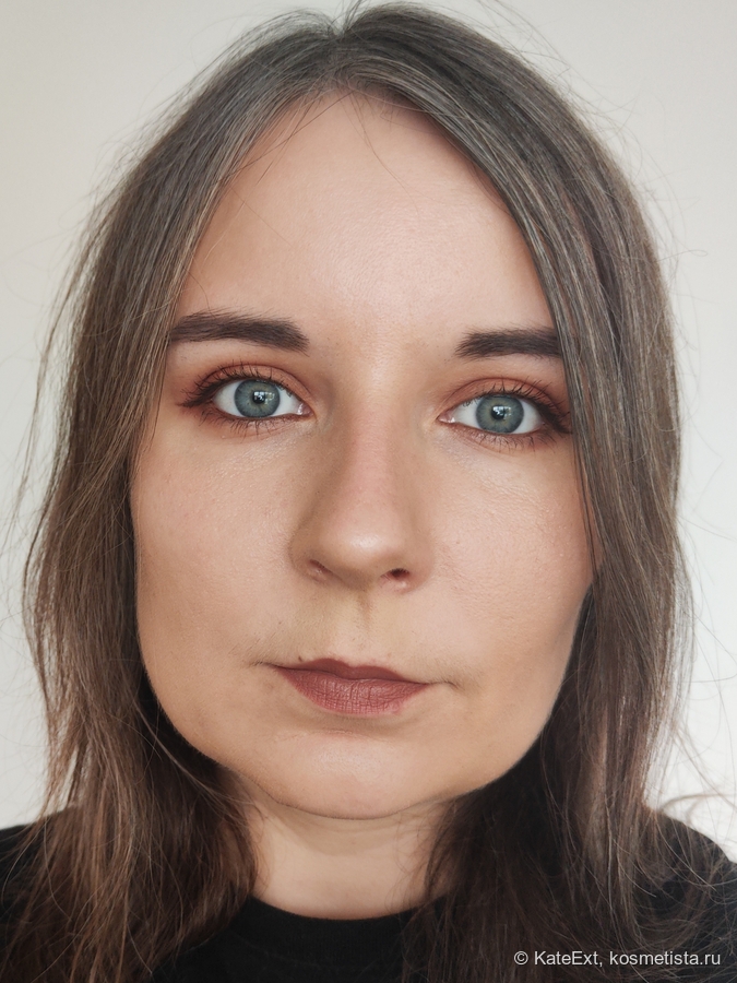 Ну и напоследок фото в полном образе: тут уже и глаза накрашены, и набор из скульптора-румян-консилера-бронзера-хайлайтера нанесен. И смотрится все это очень даже очень. Ну, во всяком случае, мне результат нравится.