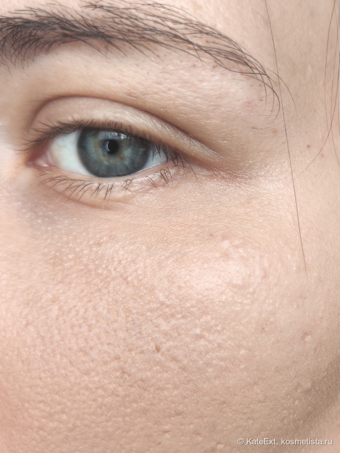 И тут тоже все хорошо: текстура кожи стала менее заметной, визуально более гладкой и равномерной. Границ тушевки тональника не видно, что хорошо, в морщинки крем тоже не залез и в них не залег. Правда, у меня есть большая складка под губой, над подбородком, и там он все же залипает, но там у меня залипает вообще все, так что я без претензий.