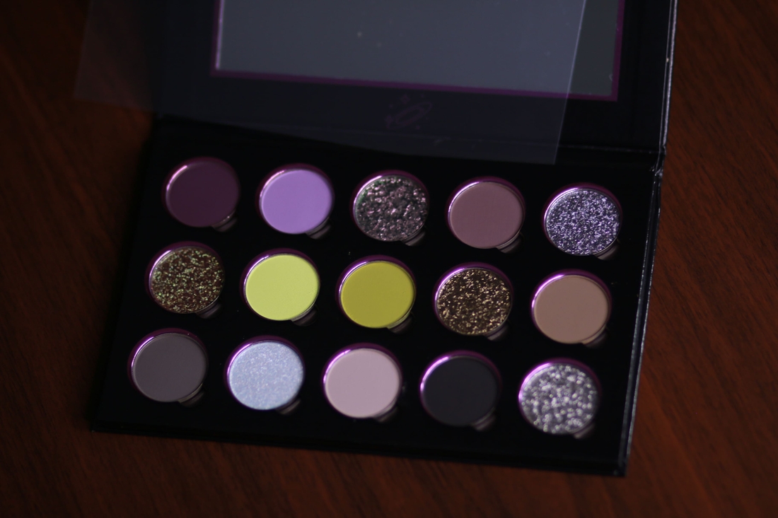 К слову, в оформлении палетки чудесным образом обобщена палитра внутри — ядовитая салатовая зелень, розовые металлические блики и лиловая темнота. Ах! Ещё и готический шрифт, ну как я могу устоять.