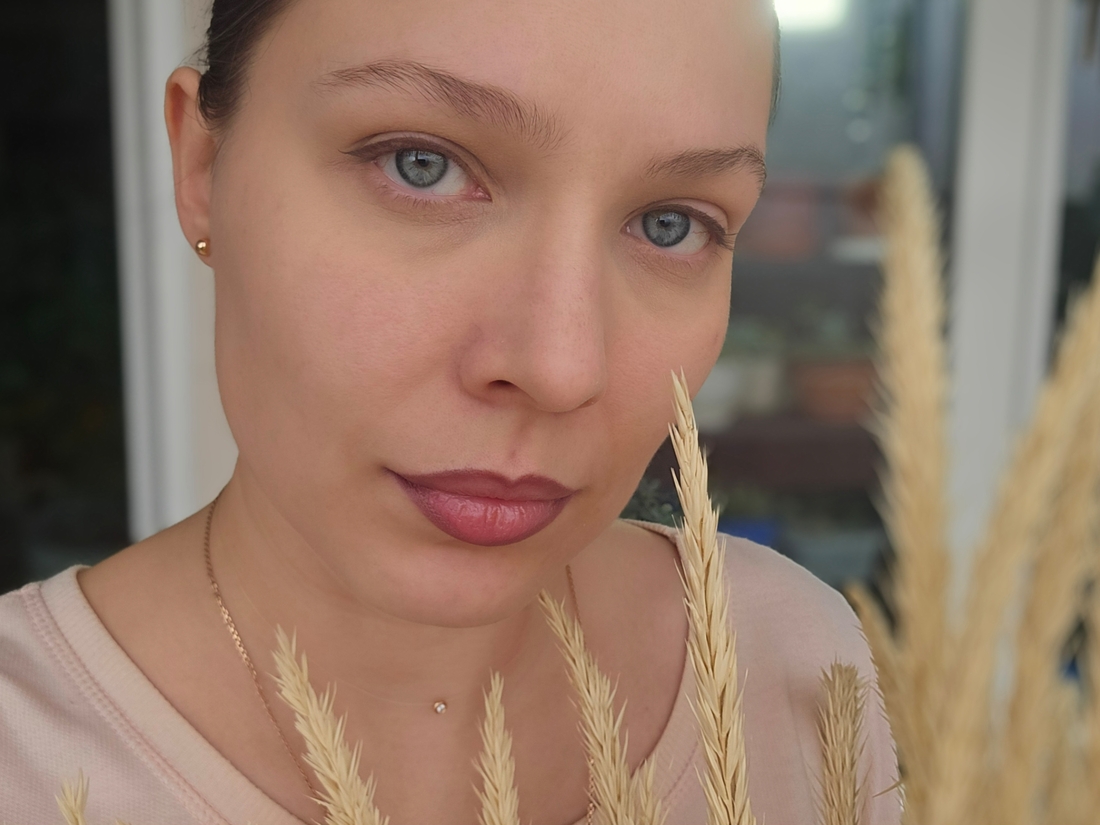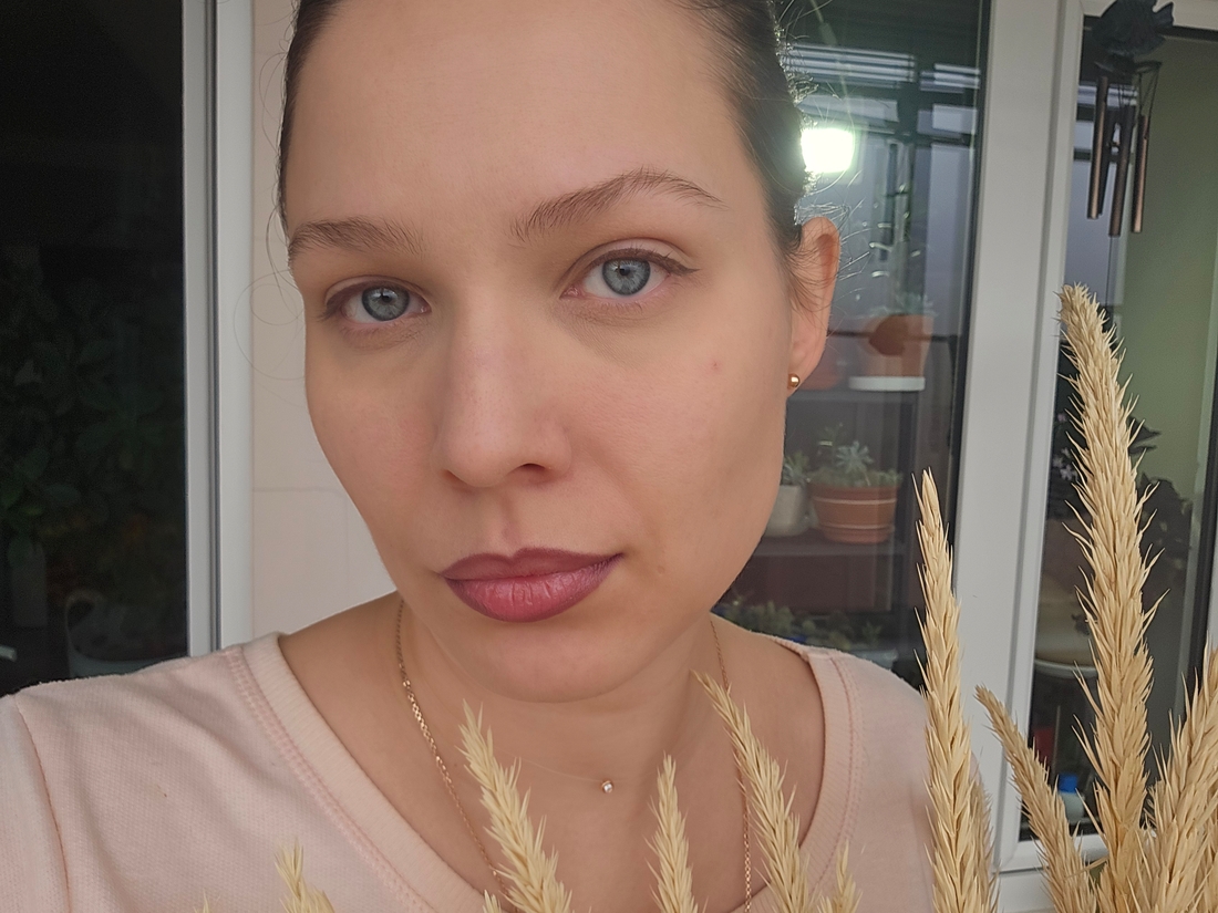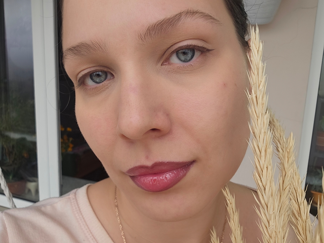 Это такой нюдовый розово-коричневый достаточно темный оттенок. Специально его взяла чтоб оттенить контур губ.