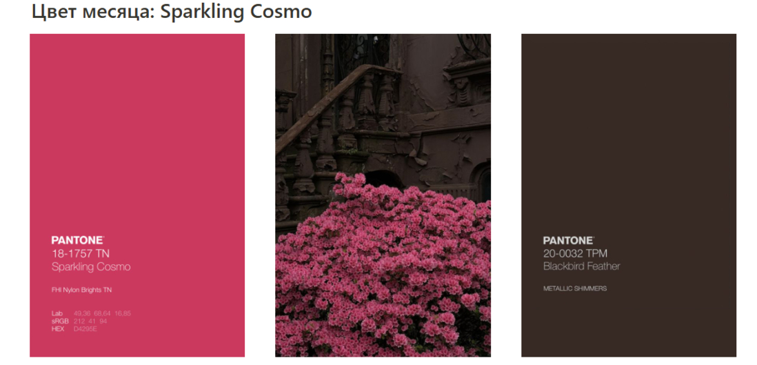 В более пасмурном свете помада смотрится как тёмно-розовая. И в этом оттенке он особенно гармонирует с палитрой месяца.