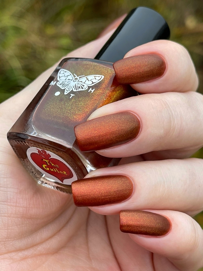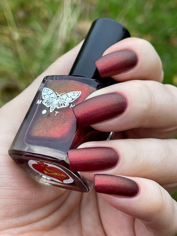 Бордовое желе с бордово-золотисто-зеленым шиммером.