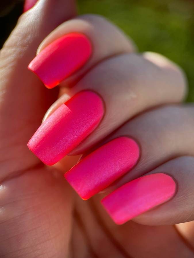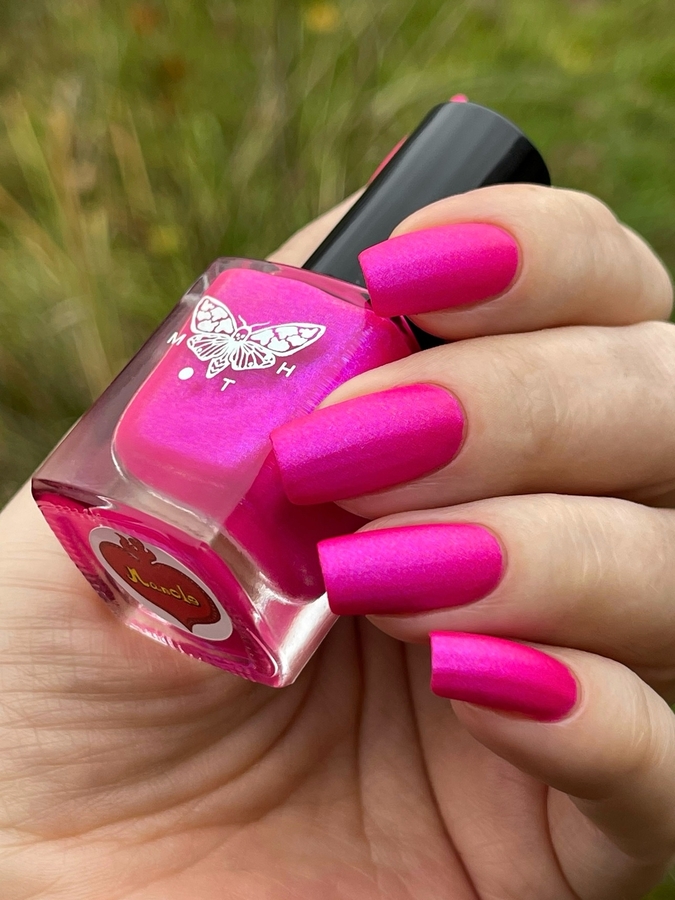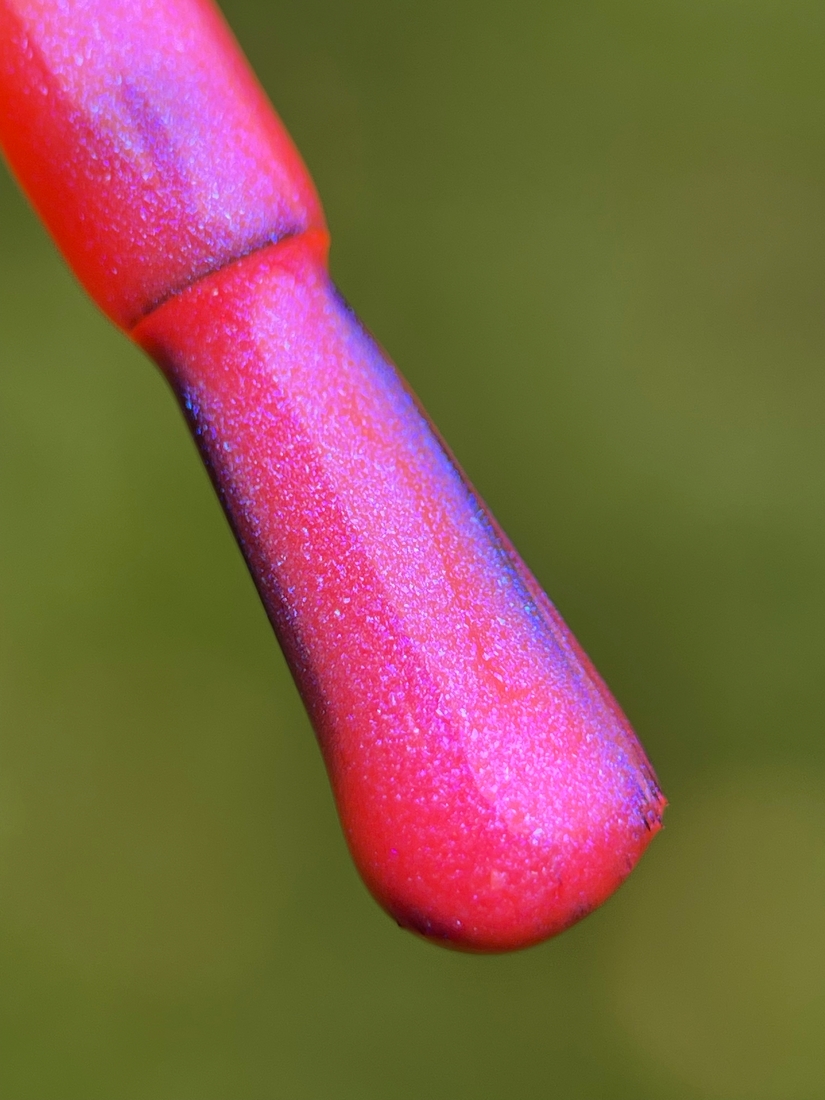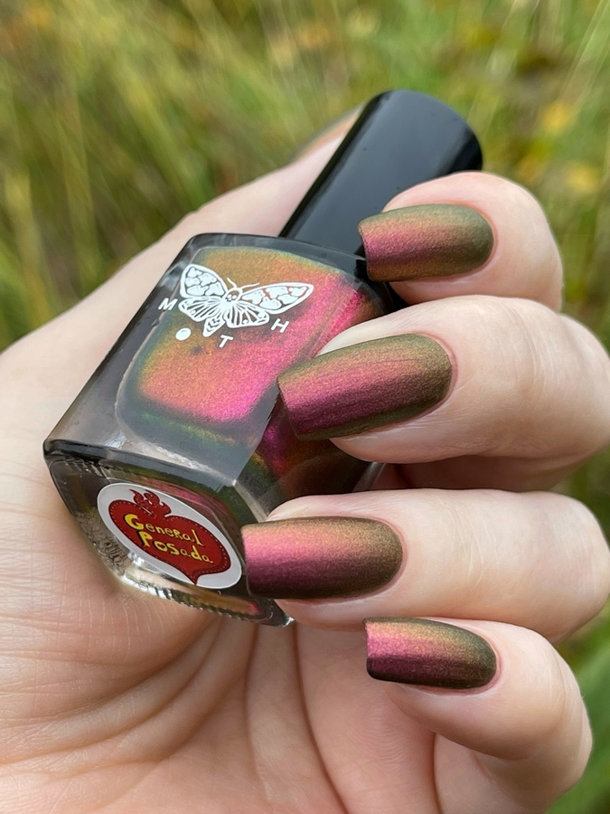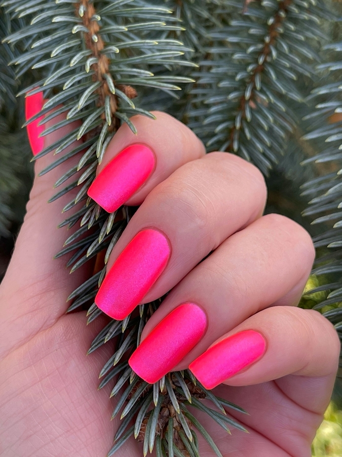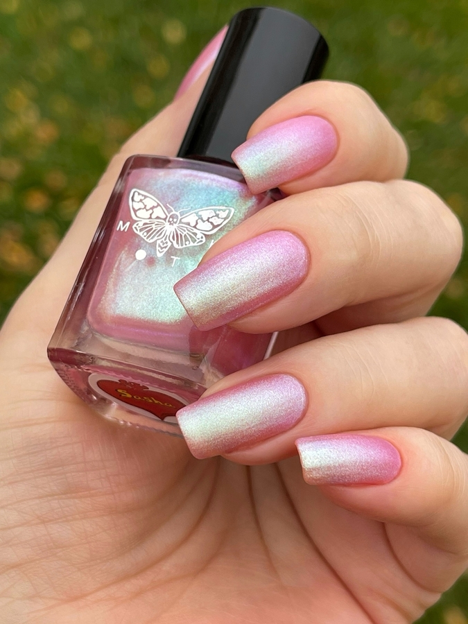 Черная база и много фуксийно-розово-зеленого шиммера.