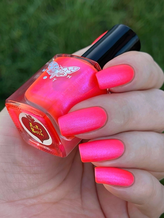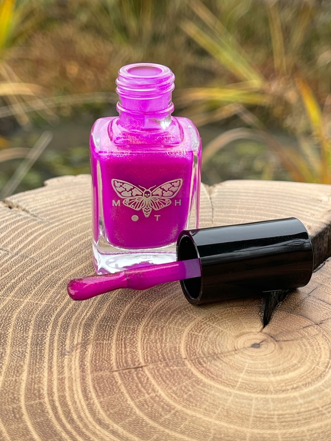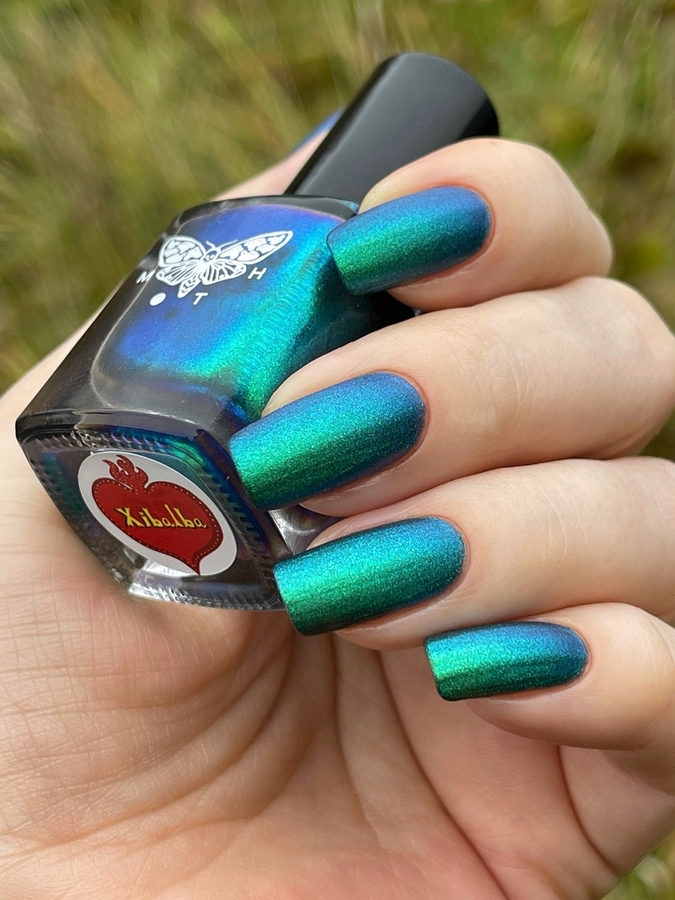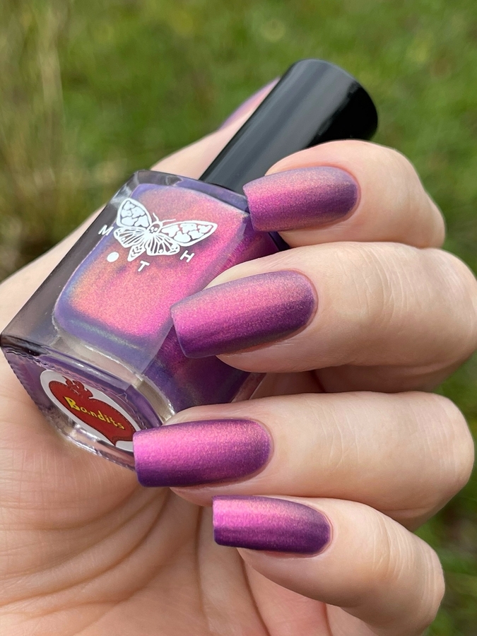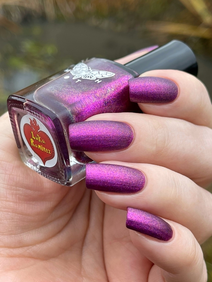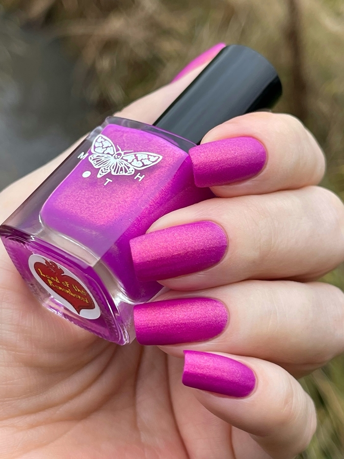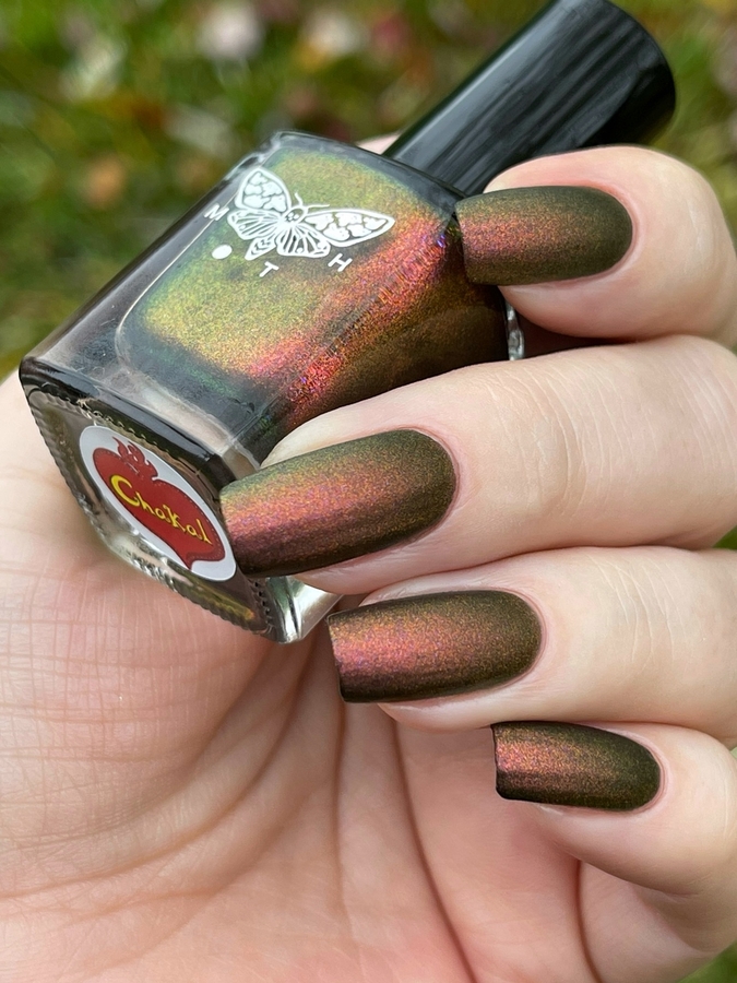 Черная база и много фуксийно-розово-зеленого шиммера.