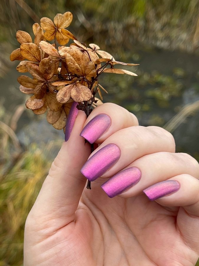 Я обожаю шиммерные лаки без наполнения, и тут такой подарок в виде одноплановой матовой коллекции с бархатным финишем.