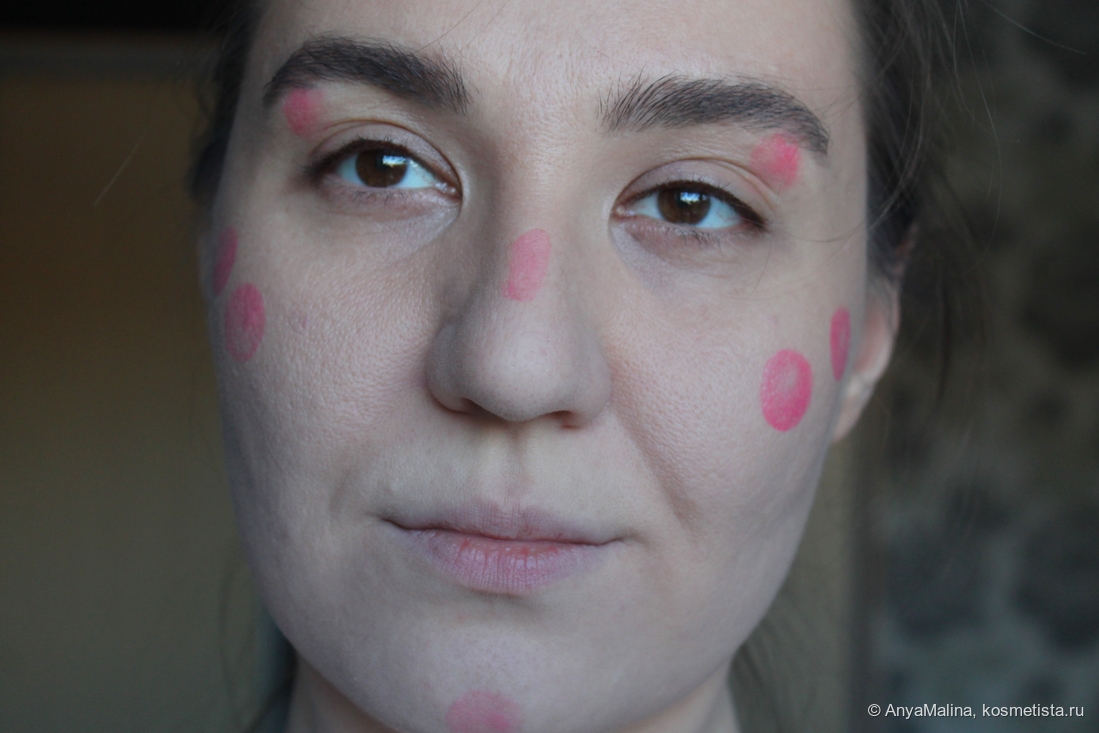 А дальше начинаю накручивать и наворачивать розовый на вентилятор. Румянами делаю страшное, видно же? Ставлю точки в стратегических местах и распределяю шустренько все тем же спонжем.