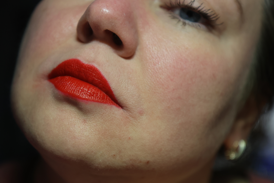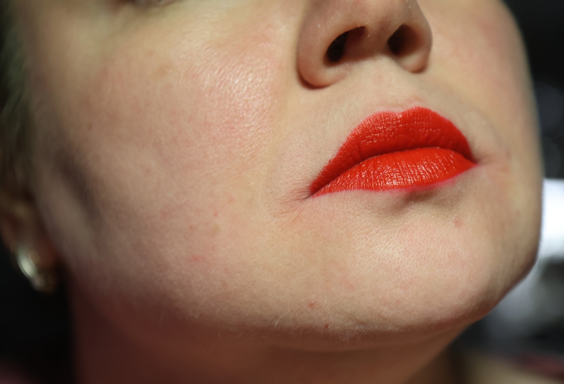 Текстура у помады кремовая, в один слой хорошо перекрывает свой пигмент губ, второго не нужно. Финиш полусатиновый с уклоном в матовый, блеска минимум. Под электрическими лампами блеск заметен. При дневном свете не особо. Наносится очень комфортно — губы не тянет. Прямо стиком хорошо рисуется контур, как-то сразу и легко это делается. Носится четыре-пять часов. Можно и больше, но перед обедом на работе я обычно стираю помаду. Самое лучшее, что в ней есть — не нужно следить — помада не растекается и не западет в складки. Не подчеркивает рельеф. Вообще как-то на редкость комфортно носится. Не сушит губы и похоже, что даже в морозы будет очень и очень удачна в плане ухода. В составе есть масла. После снятия немного тинтует. Не криминально.