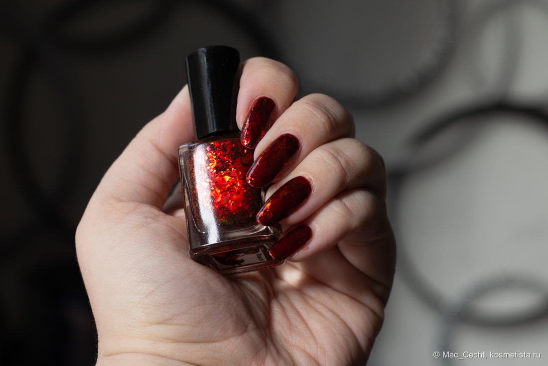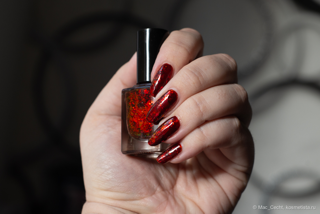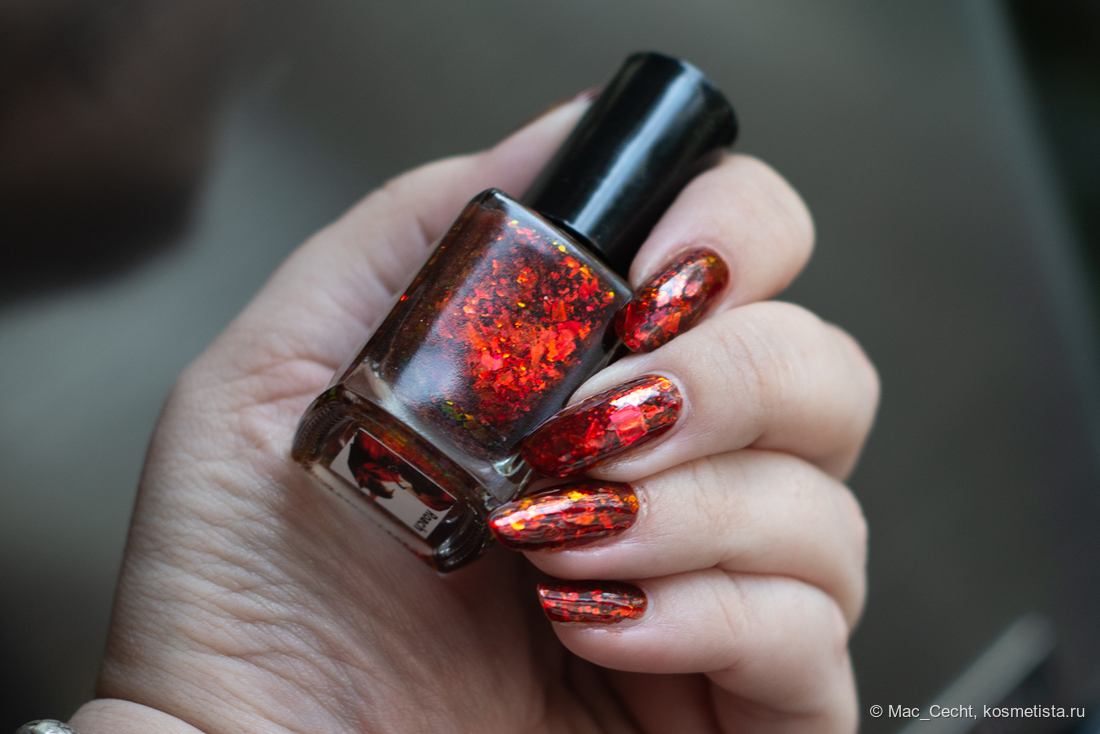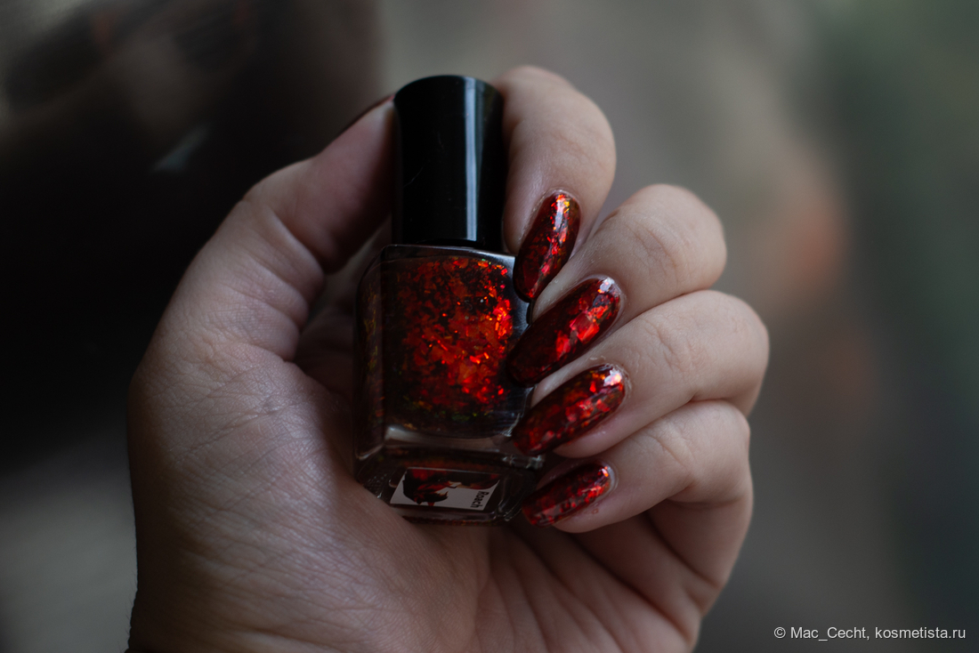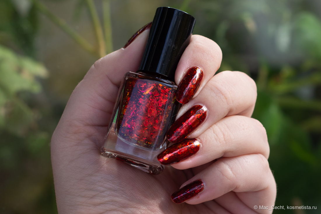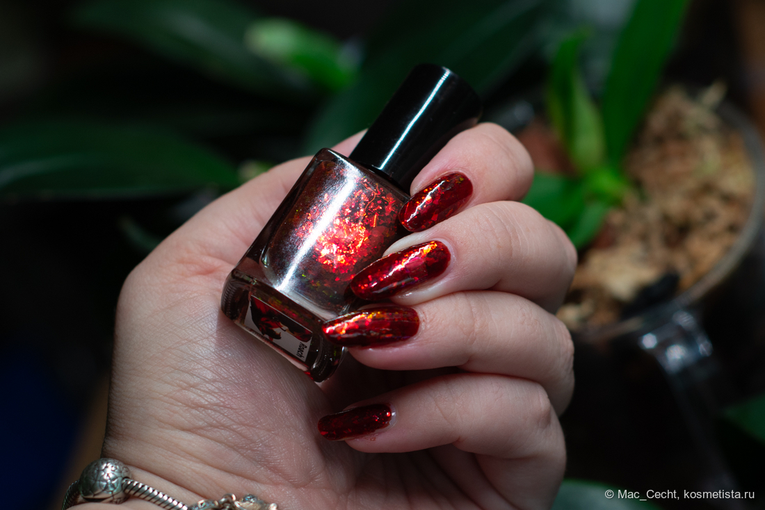 Плотва — это красное на красном. База лака темно-красная, наверное. В один слой Плотва не дает такой глубокий бордо в базе. И также в Плотве красивейша металлизированная рваная слюда. И вот за это я особенно люблю Moth — никто друго не кладет слюду такими крупными кусками. Я в восторге!