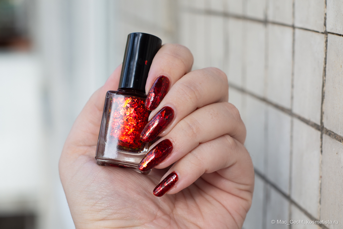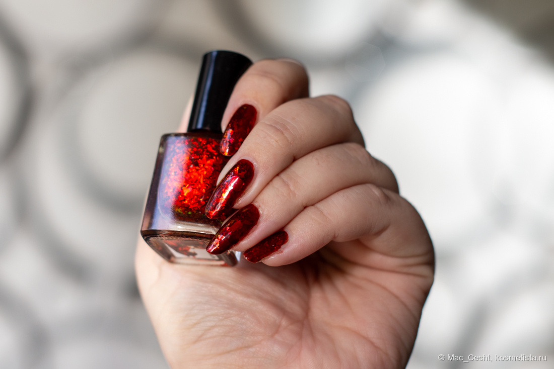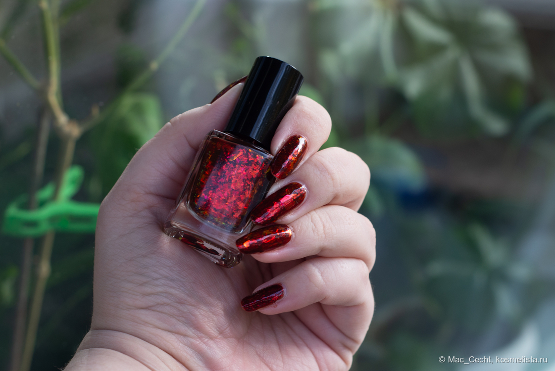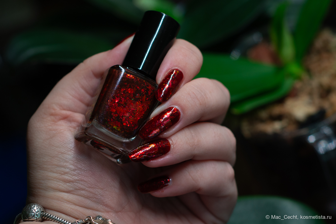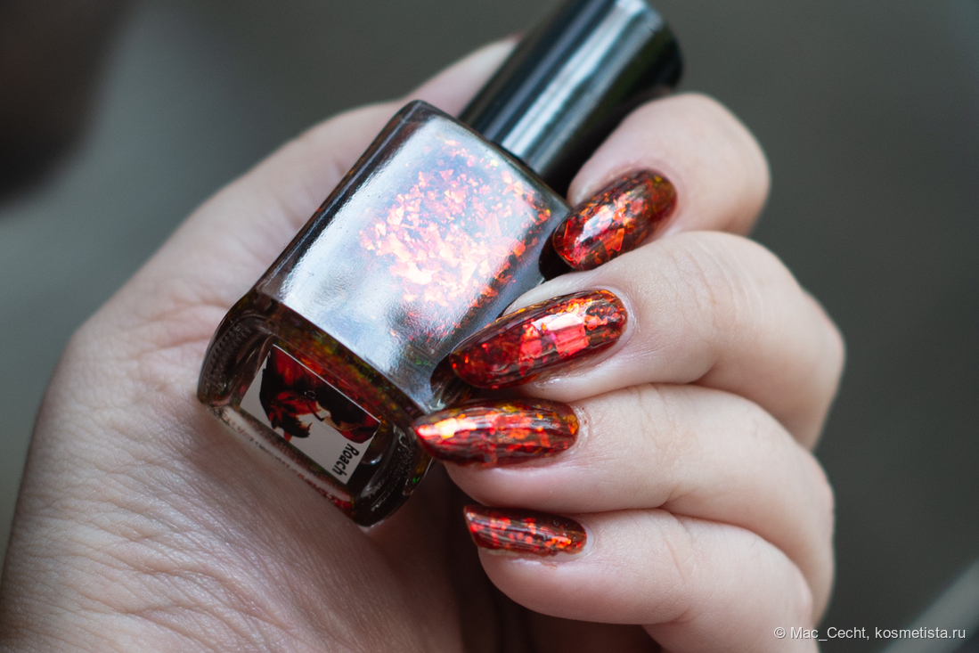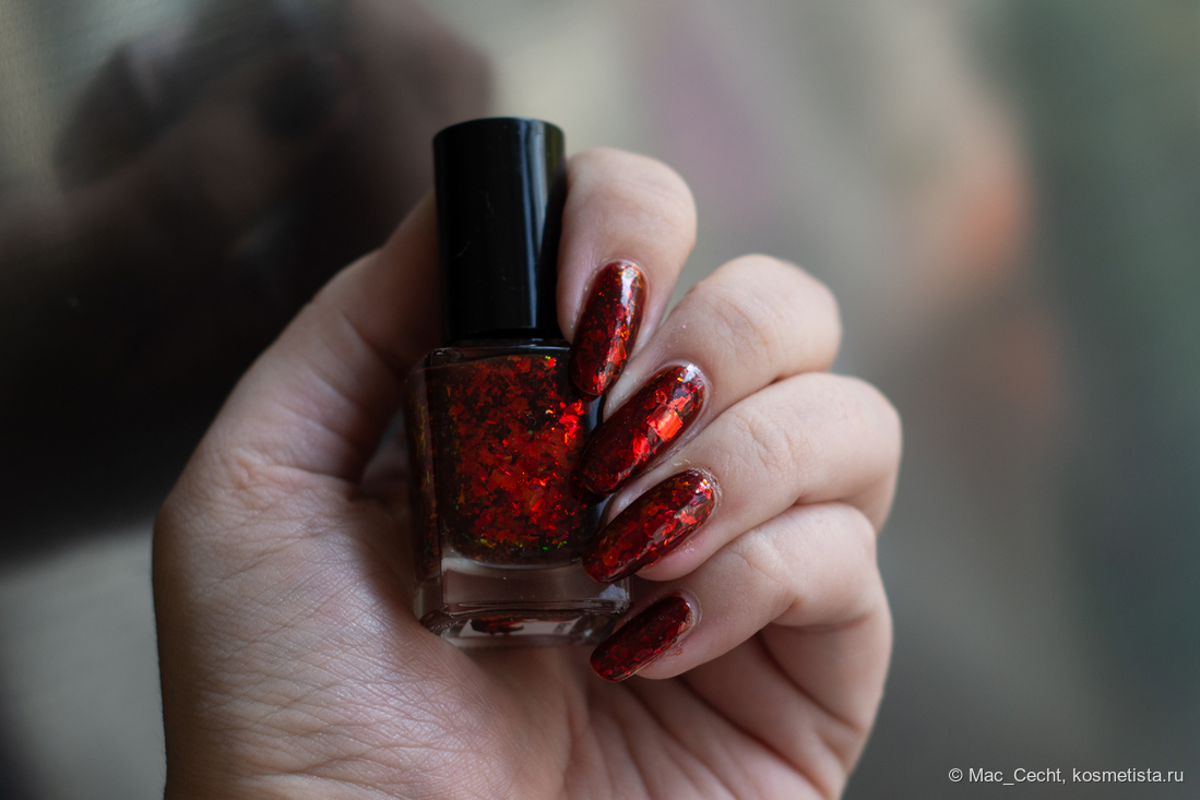 Плотва — это красное на красном. База лака темно-красная, наверное. В один слой Плотва не дает такой глубокий бордо в базе. И также в Плотве красивейша металлизированная рваная слюда. И вот за это я особенно люблю Moth — никто друго не кладет слюду такими крупными кусками. Я в восторге!