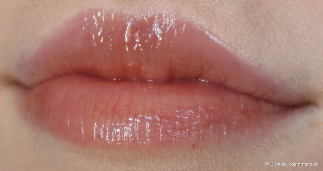 На губах бальзам лежит отлично — сглаживает шелушения, не скатывается в белую полоску, не растекается, не проваливается в рельеф. Финиш красивый глянцевый.