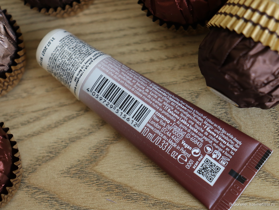 Начну с главного для меня недостатка — отдушки. Мне очень не нравится запах бальзама — он сладкий, напоминает какие-то карамельки из детства, которые мне точно не нравились… Для меня отдушка яркая, ощущается на губах еще минут 15-20. Чисто из-за нее рука к бальзаму не тянется, вот абсолютно не мой запах, хотя в целом я к отдушкам достаточно нейтральна.