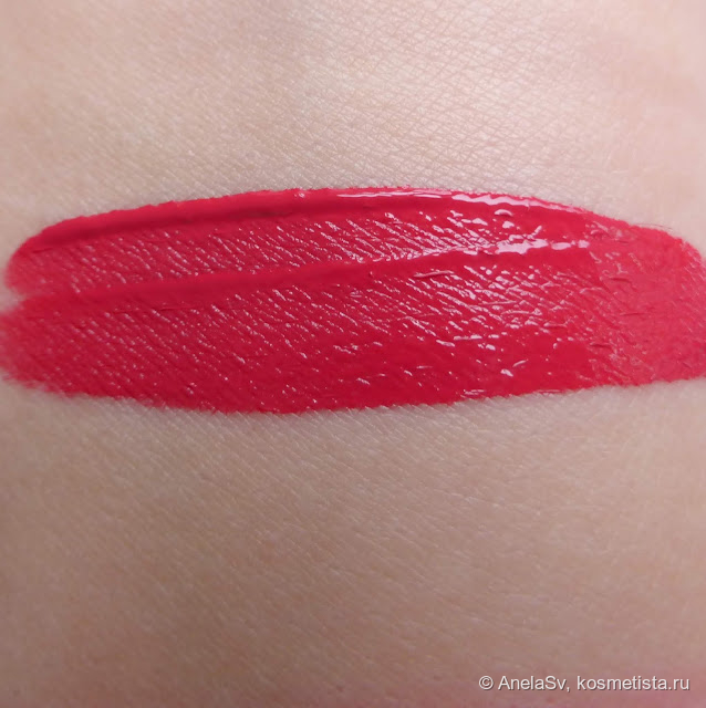 Флакон стандартный для бренда: прозрачный пластик объемом 5,5 мл, сквозь который хорошо виден цвет средства. Аппликатор скошенный, удобный, набирает оптимальное количество помады, чтобы равномерно покрыть губы. Единственное — при нанесении стоит быть аккуратнее, чтобы не выйти за контур.