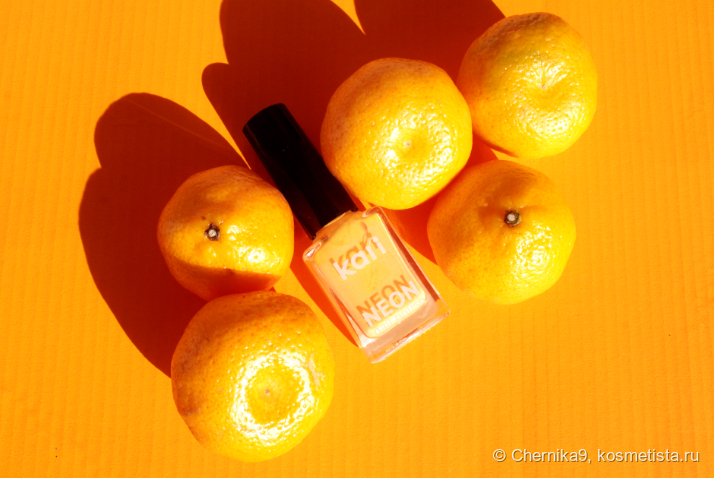 Солнечного мандаринового настроения всем заглянувшим! Сегодня я хочу рассказать о ярком и необычном лаке из моей коллекции. Мне давно уже полюбились лаки Kari — в них я нашла хорошее соотношение цены и качества. Быстро сохнут, легко наносятся, но лак № 335 из серии neon оказался для меня немного проблемным, хотя за яркий цвет я готова простить ему все недостатки.