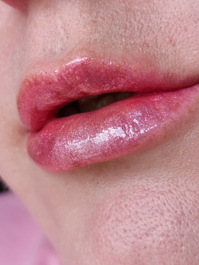 Аромат немного химозный, но притяный. В процессе носки не ощущается, вкуса у блеска нет.