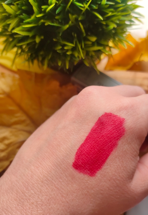 Номер оттенка — 04. Это красный насыщенный цвет. Свотч при уличном свете.