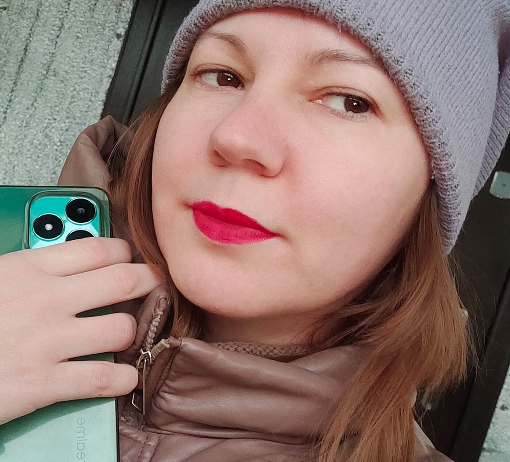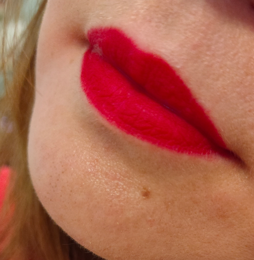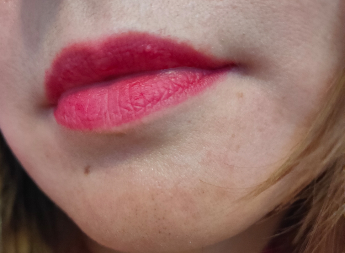 Так как помада очень яркая, мне категорически не нравится разница между цветом губ и слизистой. Вот не со всеми помадами идёт такой негативный для меня эффект.