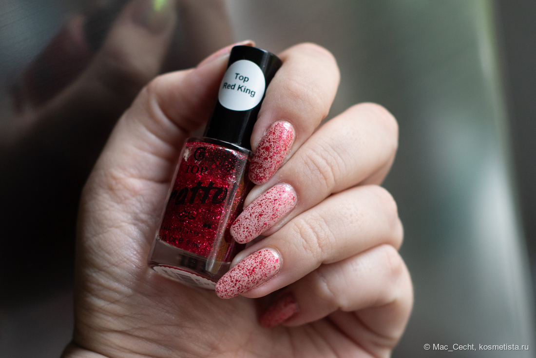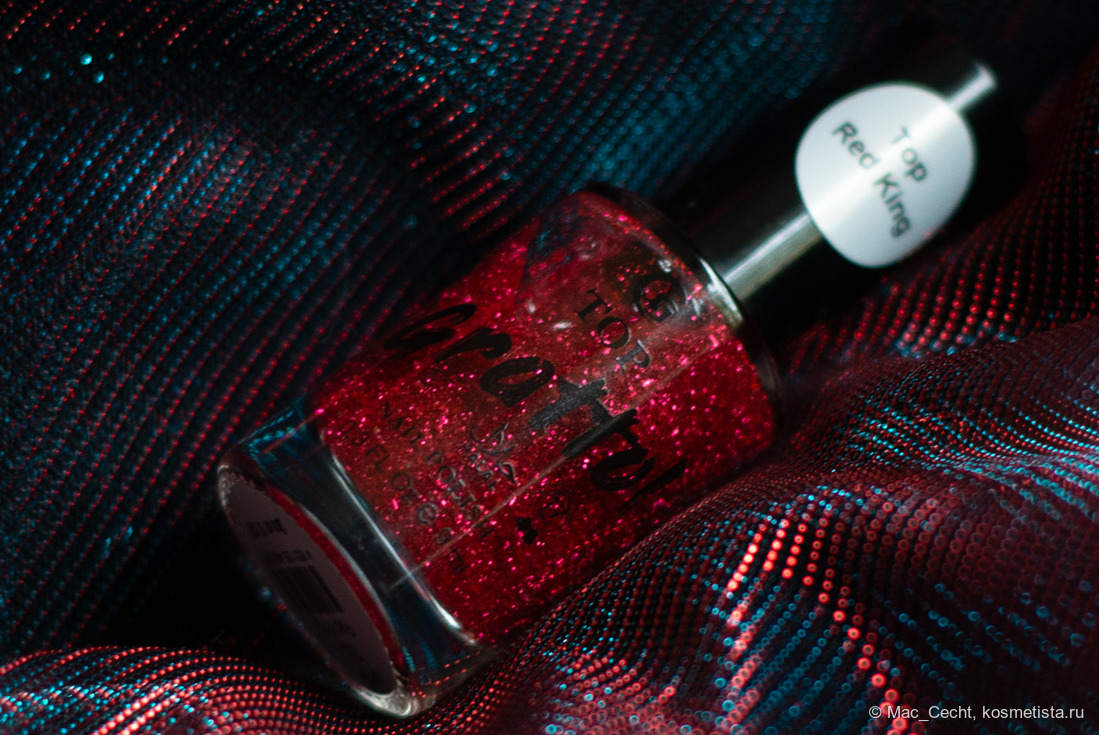 Я писала уже о двух слюдяных топах марки — серебряном и черном, сегодня речь пойдет о красном Короле: Grattol топ для лака для ногтей Red King.