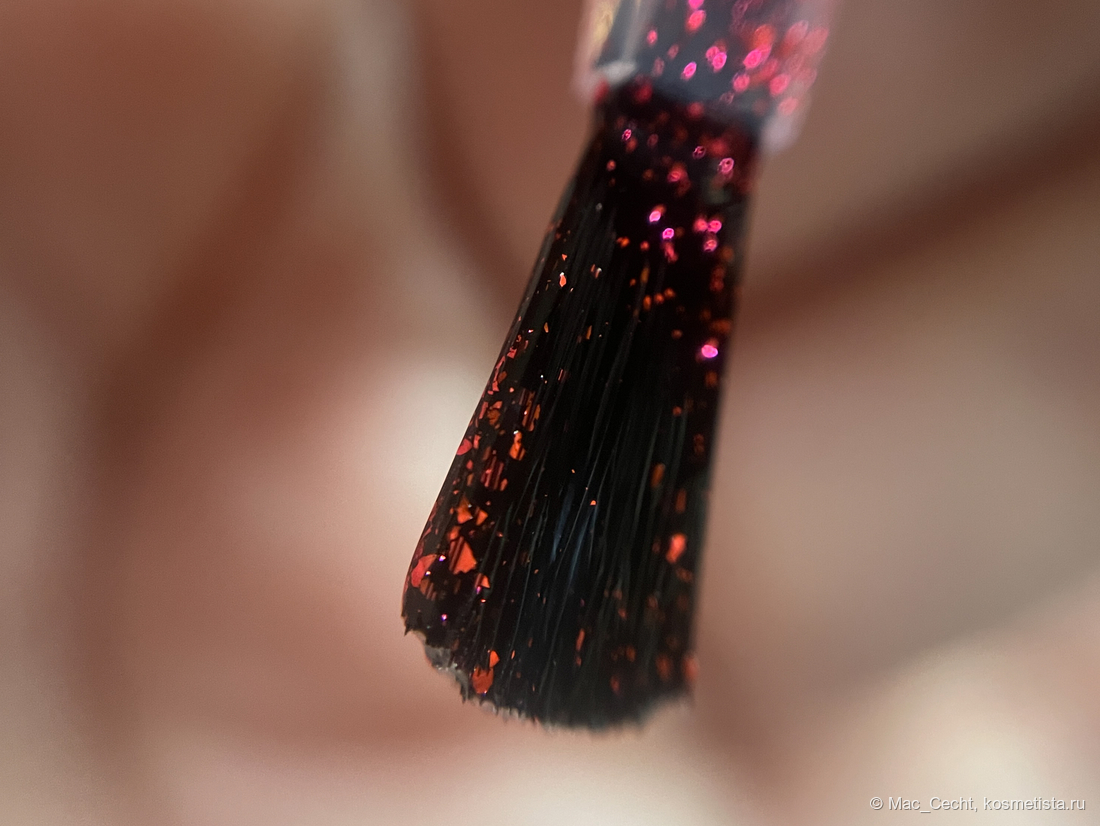 Кисть у бренда скругленная, иногда немного косая, но красить ни разу не мешало. Топ не густой, обычным слоем не растекается.