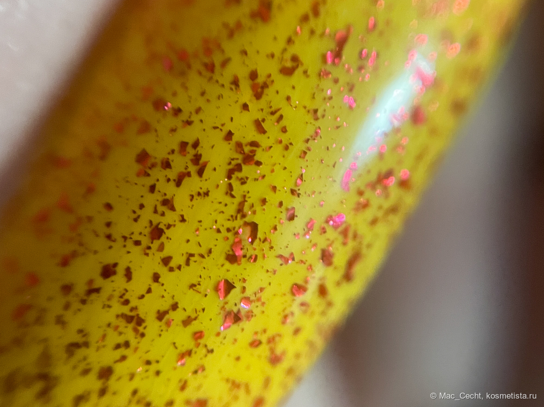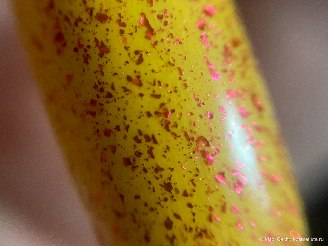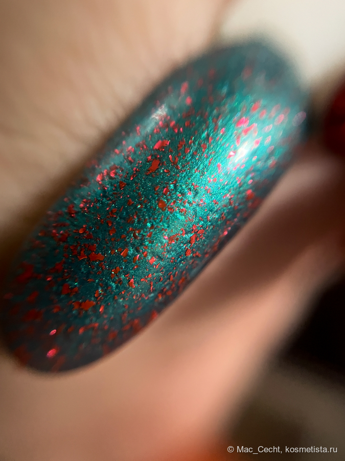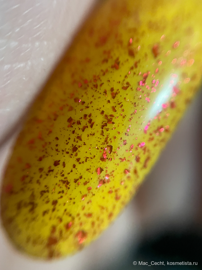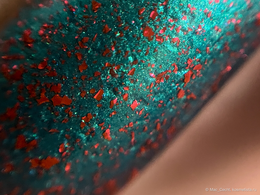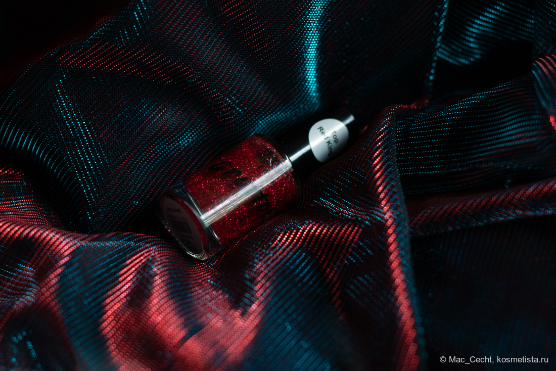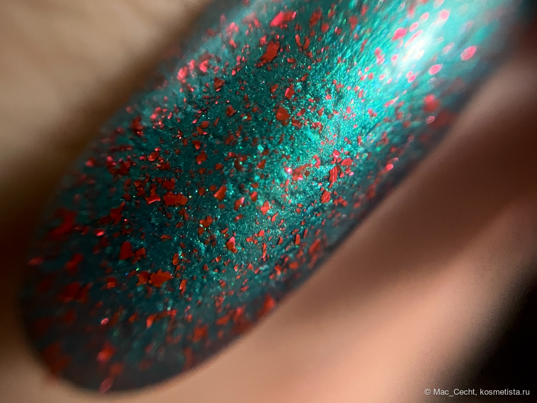 Red King — это чисто красная слюда, бликующая розовым отдельными бликами. То есть у вас не будет розового отлива и перелива на наивыйшей точке ногтя, например, именно отдельные искры.