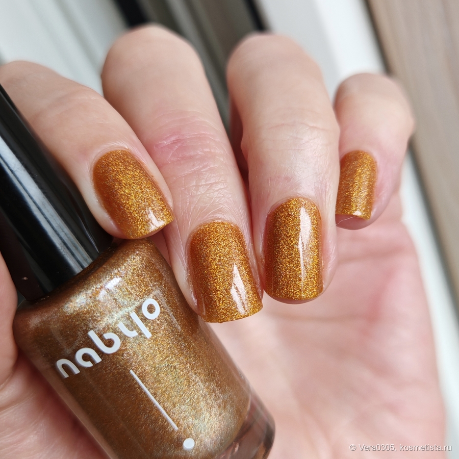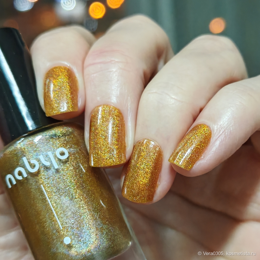 Текстура лаков — голографики, характерная «кашица», которая очень легко наносится. Не полосит, не затекает за кутикулу, саморазравнивается. Нужно нормально просушить первый слой, и тогда второй слой не тянет первый, не плешивит.