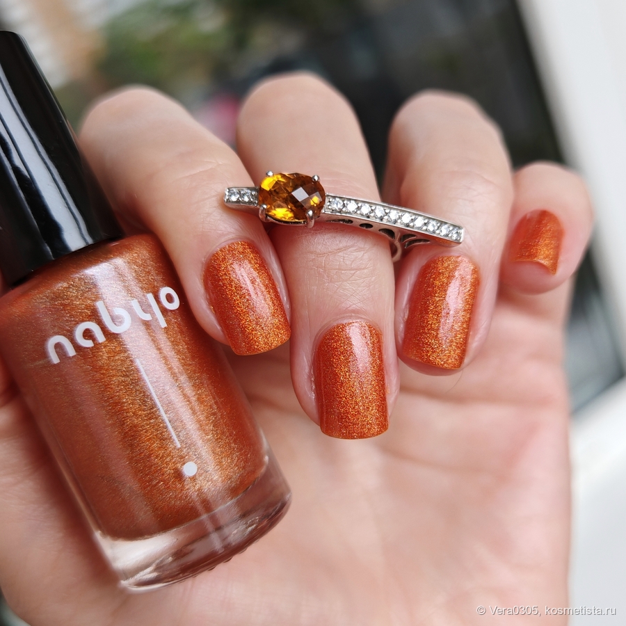 Nabyo у меня впервые, сразу отмечу утилитарную продуманность упаковки — на крышках коробочек помечен оттенок, я еще и каплю лака там оставила. Это очень удобно при хранении и выборе лаков из огромного количества (у меня около 300).