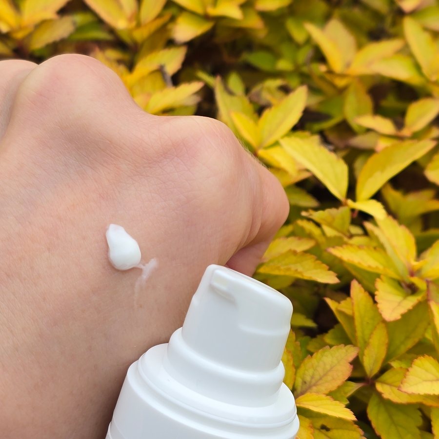 Крем находится в белом пластиковом флаконе с удобным помповым дозатором, с помощью которого можно легко регулировать необходимую порцию крема. Дозатор работает без нареканий, в носике средство не засыхает и не забивается, при «выдаче» мягко получаем крем.