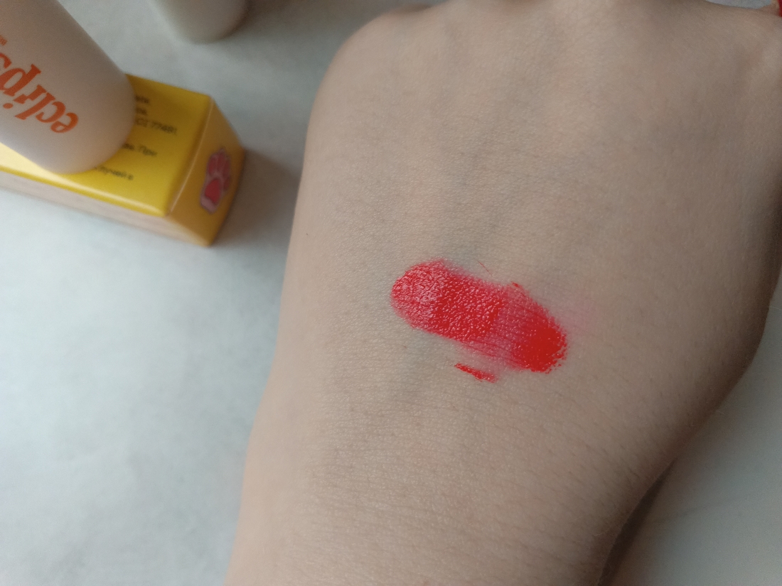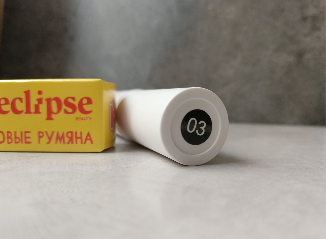 Оттенок у меня 03 — красный, бренд называет его клубничным. Возвращаясь к упаковке, когда я достала румяна из коробки, они, как и в прошлый раз, были выдвинуты и пачкали колпачок изнутри. А оттереть этот серый матовый футляр от ярких оттенков — тот еще квест.