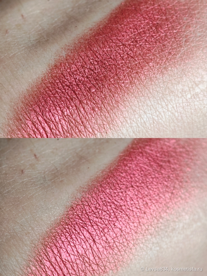 Итак, пресс номер 133 это очень глубокий красный плотный металлик с послушной текстурой и гладким металлическим финишем. При наборе может казаться рыхлым, но все частицы растираются легко, образуя равномерное плотное покрытие с первого слоя.