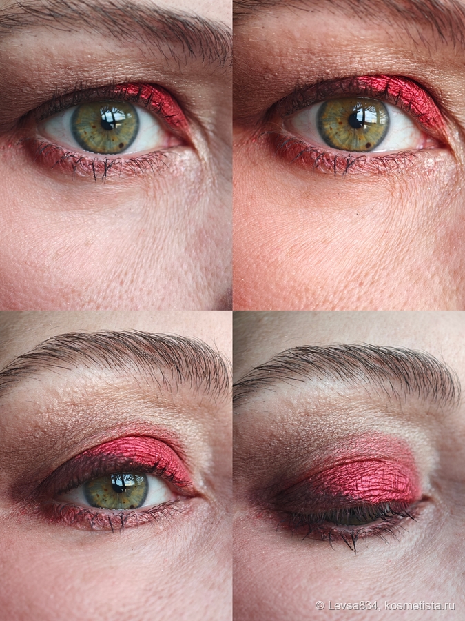 Я огорчилась, как полагается воспитанной барышне, но только слегка и ненадолго, поскольку оказалось, что этот оттенок невероятно хорош. Да, и повторю, так и не скажешь. Пугает этот глубокий красный, ну куда его, на глаза? Ха! Но посмотрим.