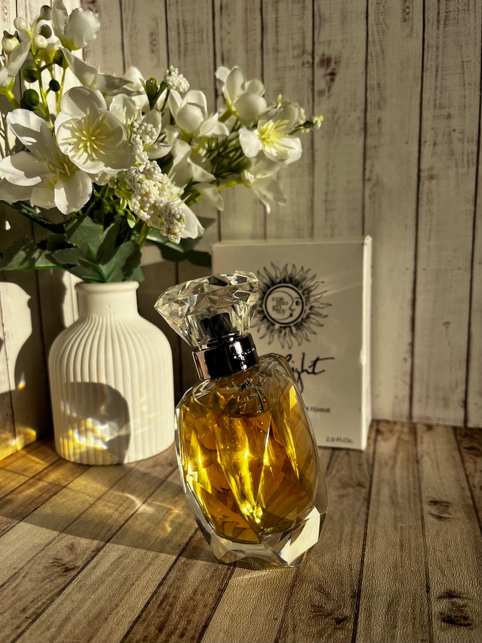 На старте Moon Light раскрывается мятой и пряными специями, я улавливаю тонкие аккорды кардамона и мягкого розового перца. Затем появляется чуть медовая сладость и густые цветочные ноты ириса, фиалки и пиона. Аромат становится тихим, пудровым и бархатистым. Роза здесь не солирует, а гармонично вписывается в общую композицию. Далее сквозь буйство цветов пробиваются свежие морские аккорды и легкий, нежный аромат лотоса. Дыню, к сожалению, мне услышать не удалось.