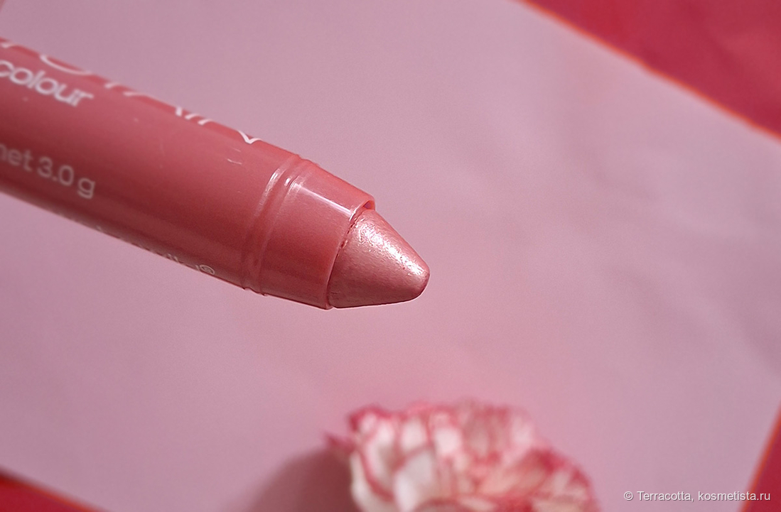 Поэтому дают очень фростовый эффект. Хотя сам оттенок моего бальзама приятный — нюдово-розовый.