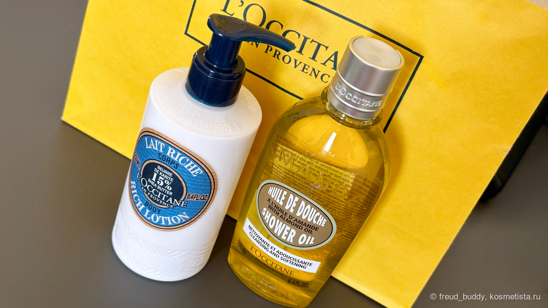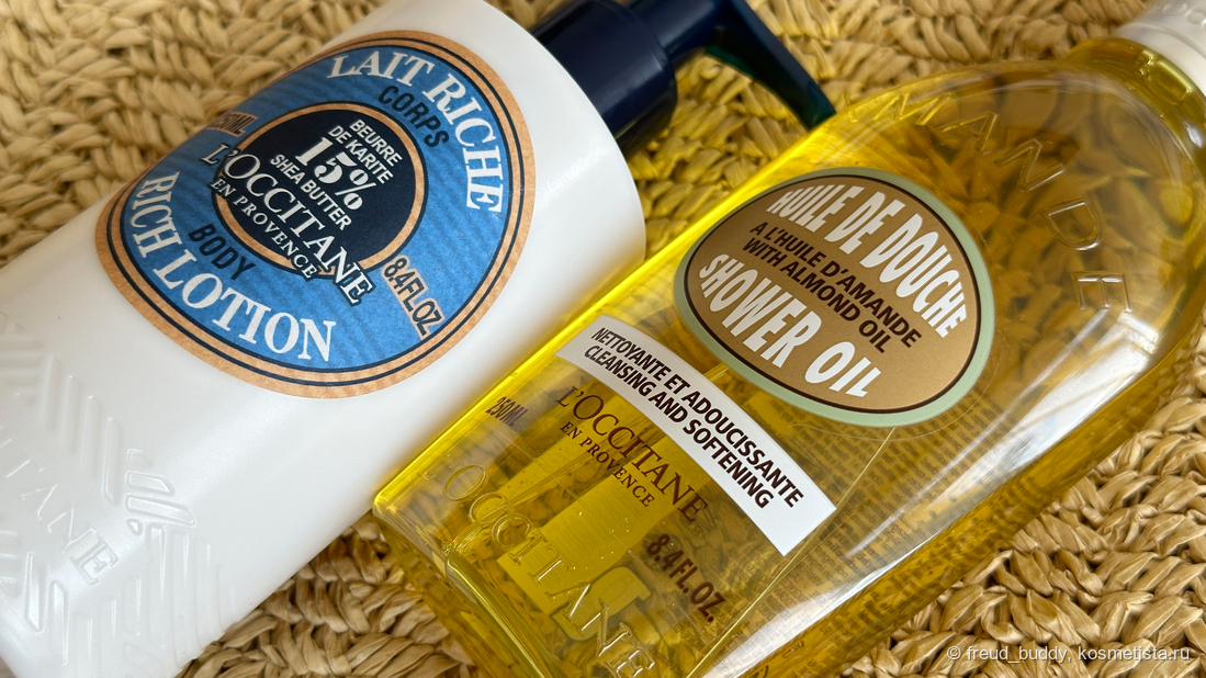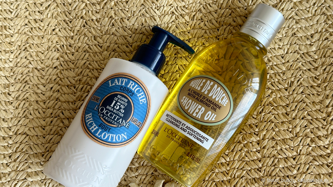 Отопительный сезон уже начался, и моя кожа решила окончательно высохнуть. Поэтому в очередной раз я обратилась к проверенным временем средствам от L'Occitane. Вы наверняка их знаете — это масло для душа L'Occitane Almond Cleansing And Softening Shower Oil и молочко для тела L'Occitane Shea Butter Ultra Rich Body Lotion.