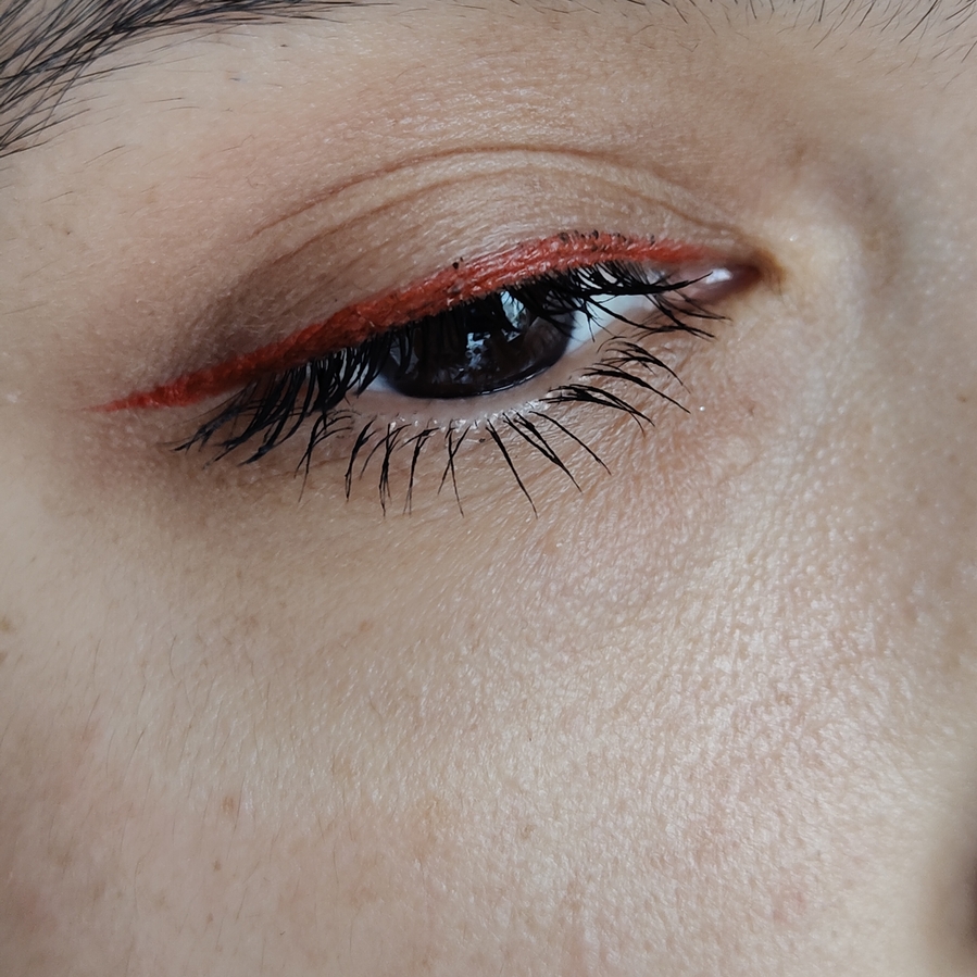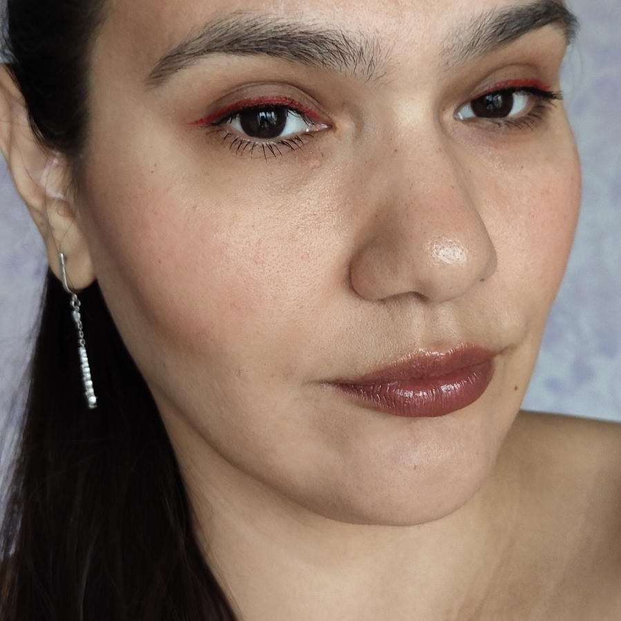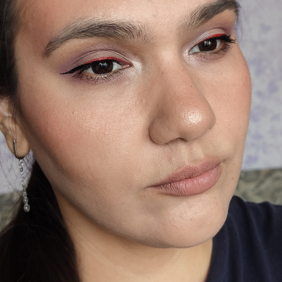 Подводка не смотря на то, что полупрозрачная неплохо наслаивается не срывая предыдущий слой. Может слегка растекаться, но не сильно. В первое нанесение мои глаза среагировали на неё, веки щипало. Но в дальнейшем больше подобного не повторилось.
