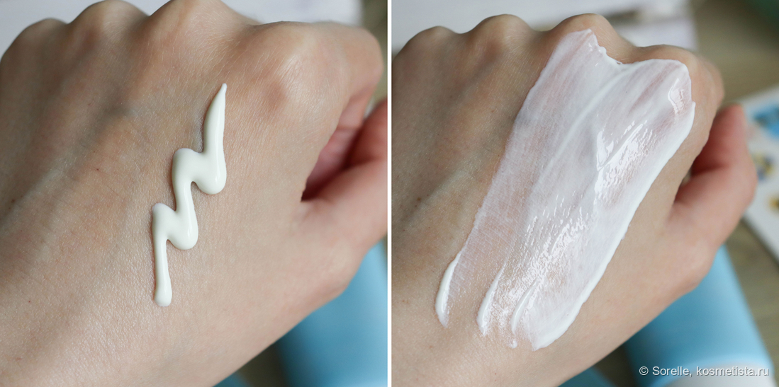 - При нанесении на кожу есть белые разводы, но после впитывания санскрин выглядит абсолютно прозрачным.