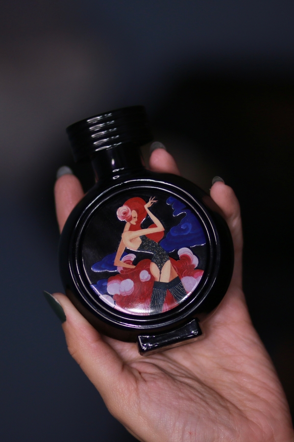 По настроению аромат напоминает мне красный же фланкер Givenchy L’Interdit Rouge. Там интригующая то ли апельсиновая то ли вишнёвая настойка, а в HFC I Wanna Be Loved By You — ягоды, которые перешли на тёмную сторону.