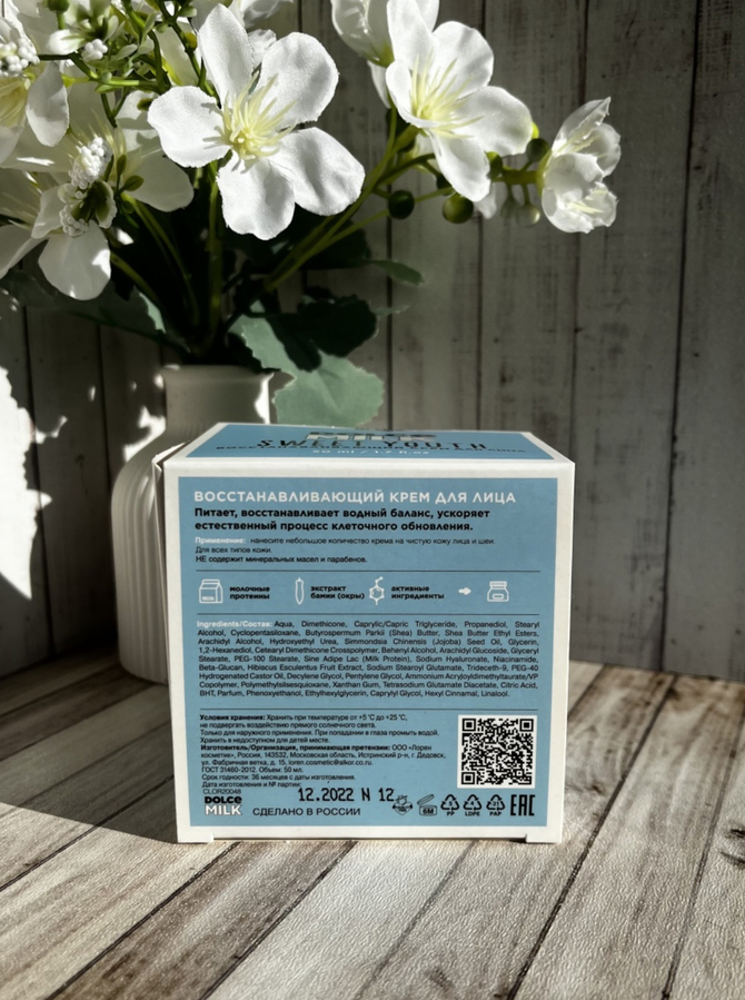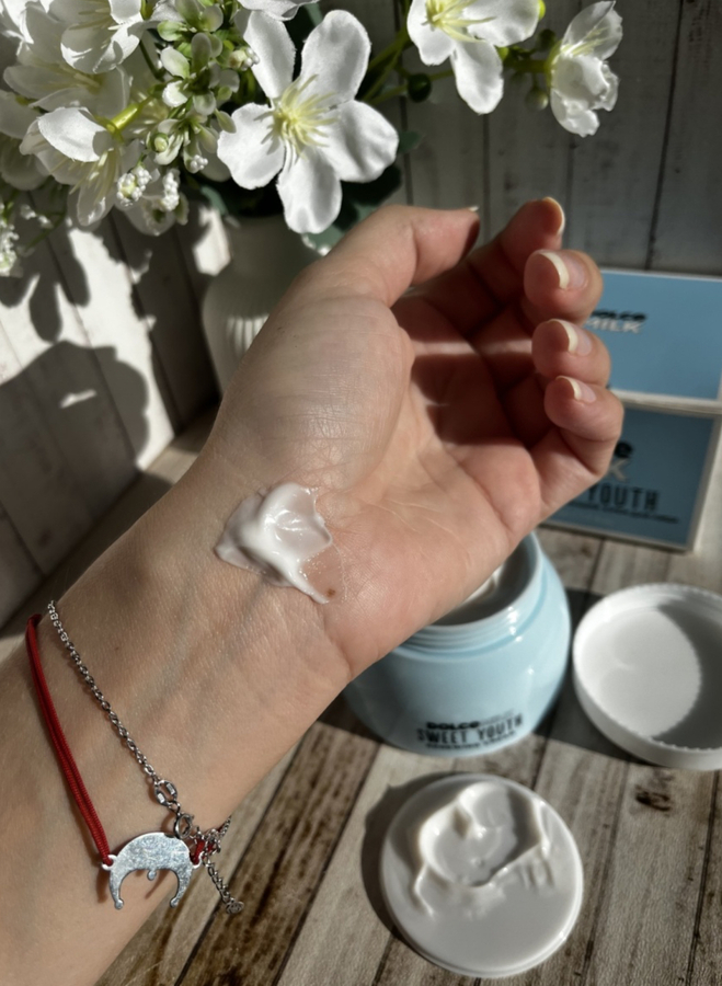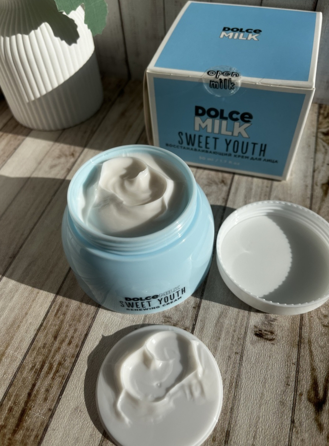 У меня сухая и обезвоженная кожа, а особенно это ощущается в холодное время года. Крем Dolce Milk Sweet Youth стал просто моим спасением. Он моментально увлажняет и питает кожу, снимает ощущение сухости и стянутости. На коже абсолютно не заметен, достаточно быстро впитывается и не оставляет после себя жирный блеск. Ощущается очень комфортно. Делает кожу очень мягкой, нежной и бархатистой. К ней хочется прикасаться снова и снова! Крем мне очень понравился, за неделю использования кожа преобразилась, прошли все шелушения.
