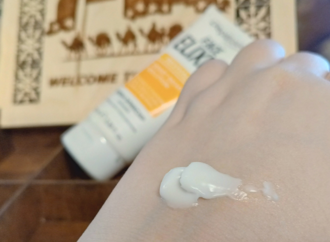 По текстуре крем густой, в составе есть масло ши, что создает характерную плотность. Распределяется по коже он неожиданно просто. Но влажным и текучим не становится. С ним важно не переборщить, так что я беру совсем крошечные дозы. Того объёма, что на фото ниже мне хвататет примерно на три раза на все лицо. Но я также использую крем на шею и иногда на зону декольте, так что расход всё равно присутствует.