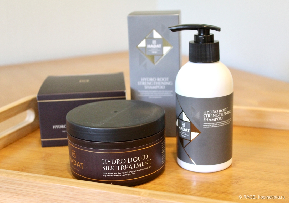 Сегодня речь пойдёт об уходе за волосами, и рассказывать я буду о двух продуктах бренда Hadat – шампуне Hydro Root Strengthening Shampoo и маске Hydro Liquid Silk Treatment.
