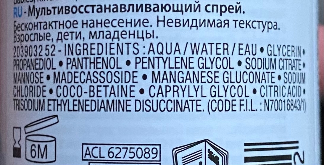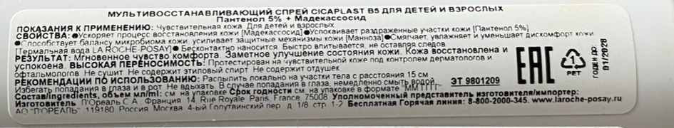 Спрей обещает смягчать, увлажнять и моментально успокаивать кожу, ускорять процесс её восстановления, способствуя балансу микробиома кожи и усиливая её защитные механизмы. Средство рекомендуется использовать не только при солнечных ожогах, но и при царапинах, ссадинах для детей и взрослых.