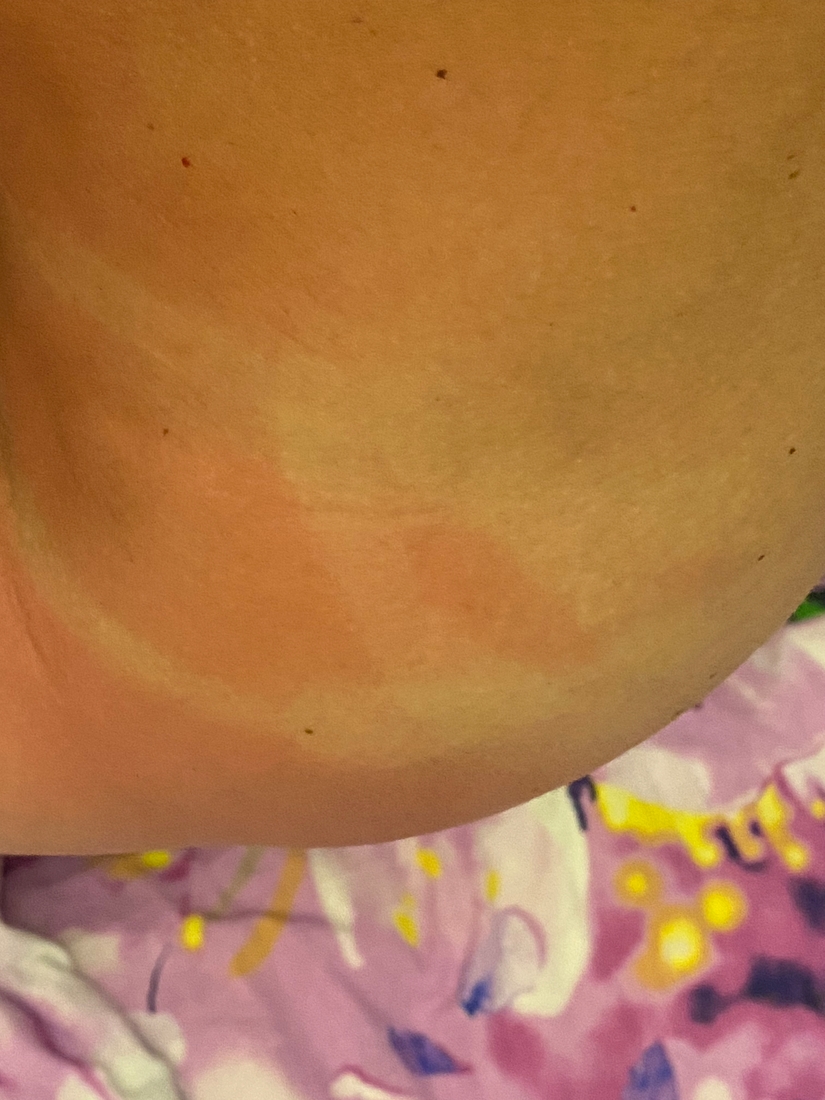 Чтобы вы лучше представляли, после пляжного валейбола спина и плечи ребёнка выглядели так. И это муж его ещё помазал))) Просто взял мой лосьон с спф 10, а не приготовленных для них крем с спф 30.
