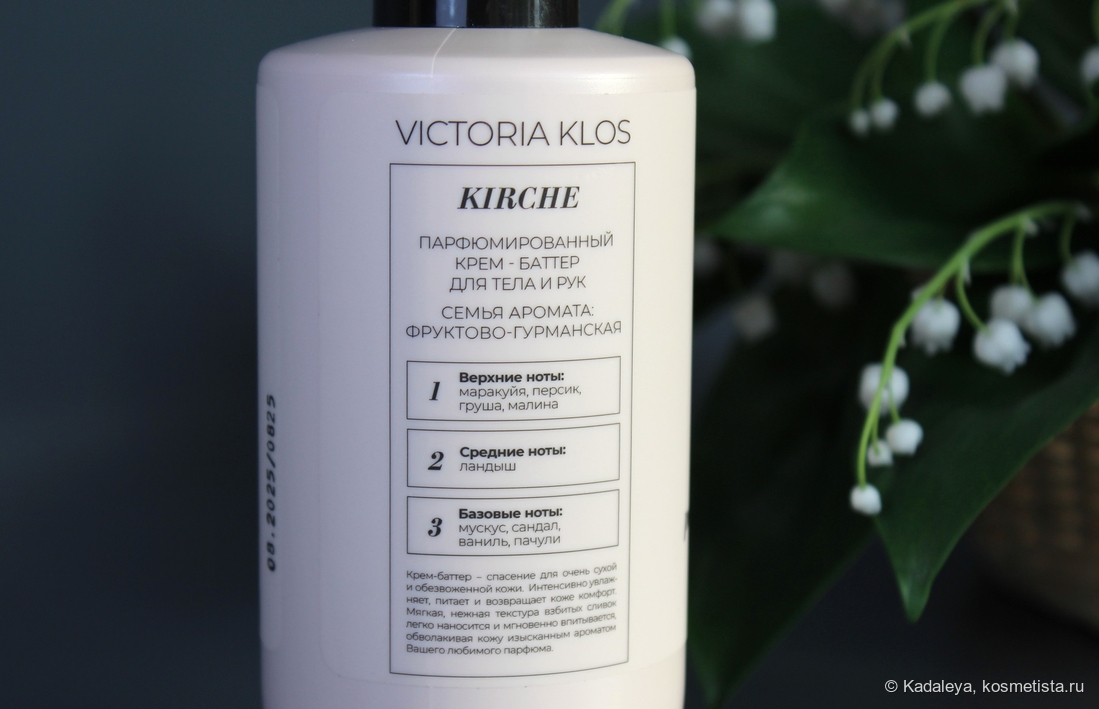 Мой выбор пал на парфюмированный крем-баттер для тела и рук Victoria Klos № 20 Kirke, по мотивам знаменитого аромата Tiziana Terenzi. С этим парфюмом я не знакома. Выбирала крем по пирамиде аромата, поэтому сравнивать схожеть звучания в этом обзоре я не буду.