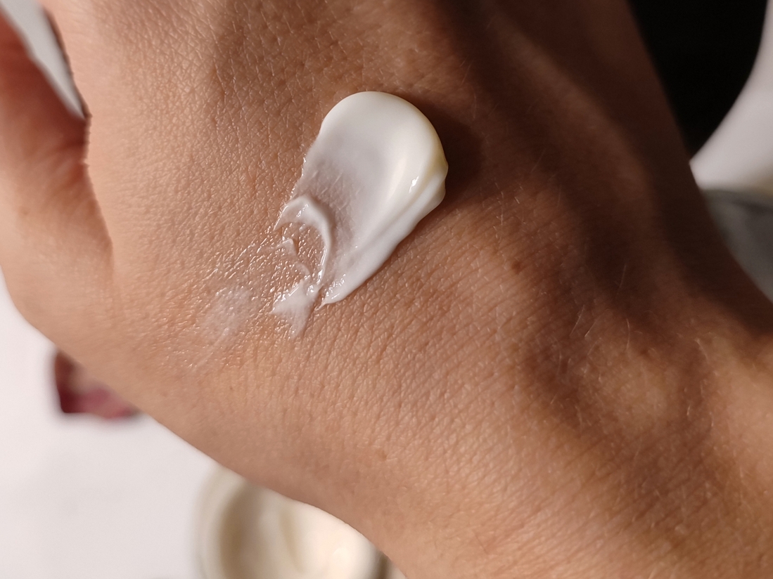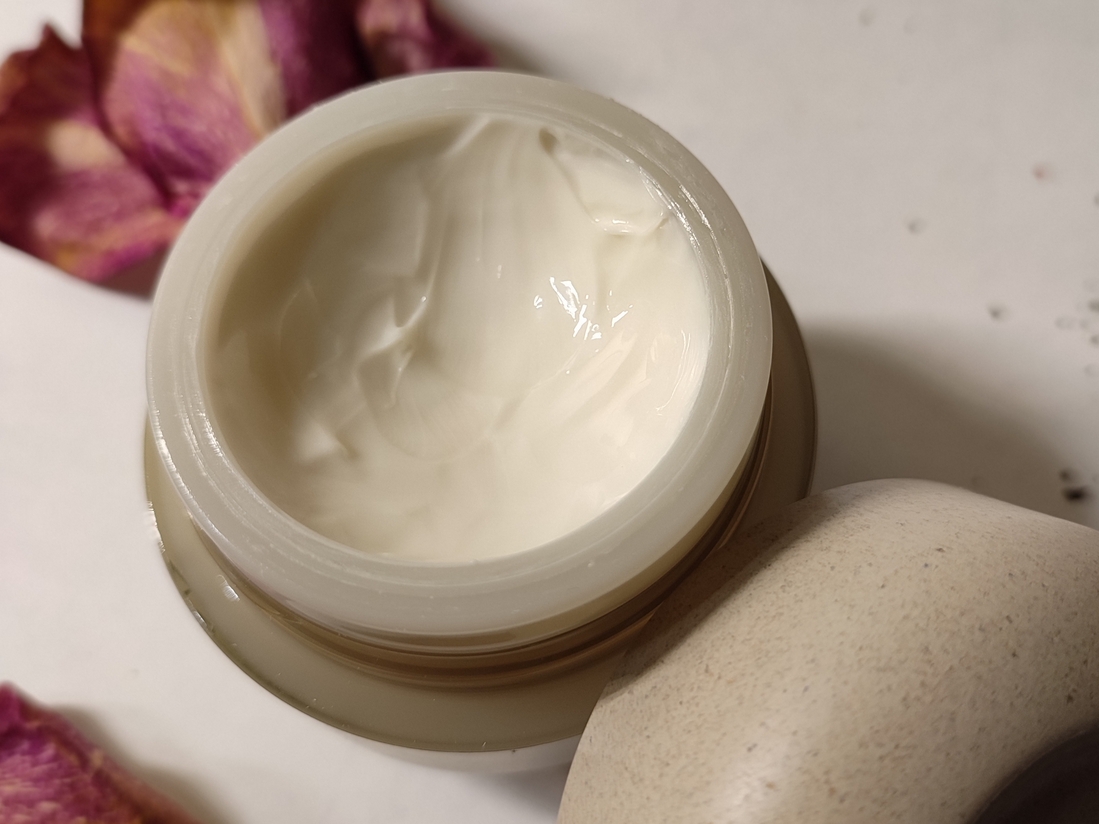 Под крышкой нас встречает легкий цветочно- травяной аромат, который быстро выветривается и не ощущается после впитывания крема.