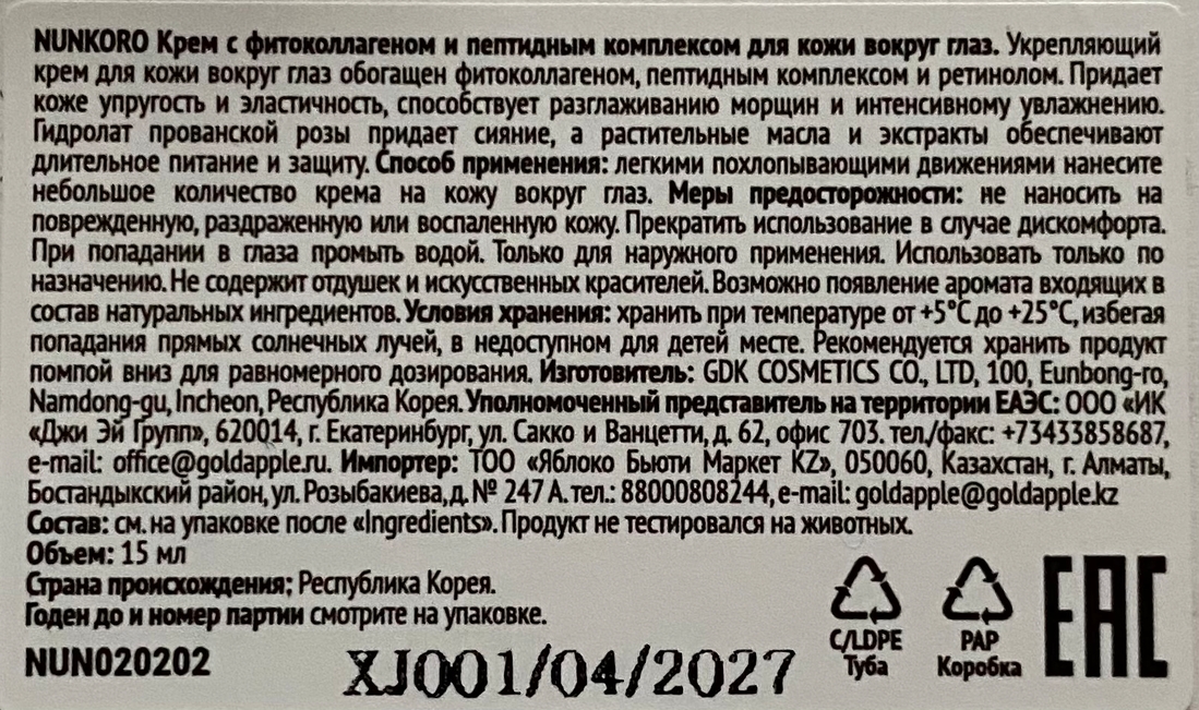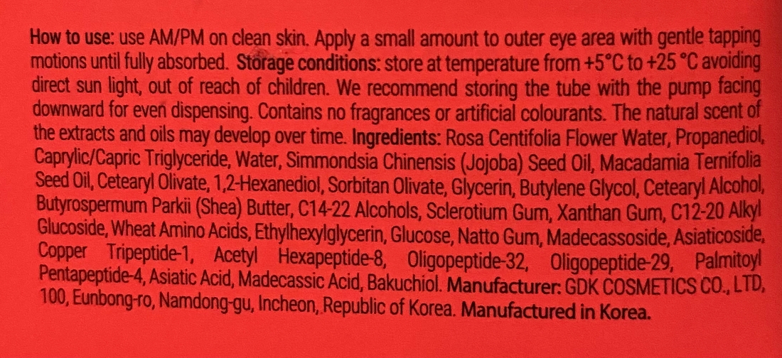 В общем, рабочий пептидный крем для глаз, обеспечивающий антивозрастной уход с богатым составом и продуманной формулой, которая сочетает растительные пептиды, фитоколлаген, бакучиол и центеллу, обеспечивая коже глубокое увлажнение, упругость и защиту.