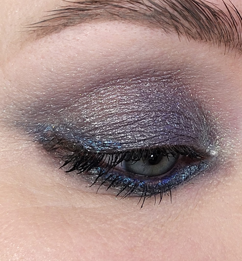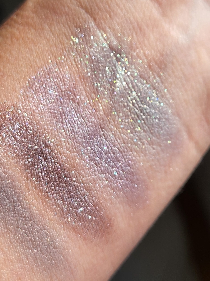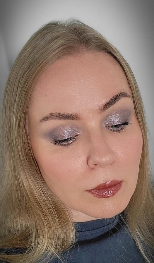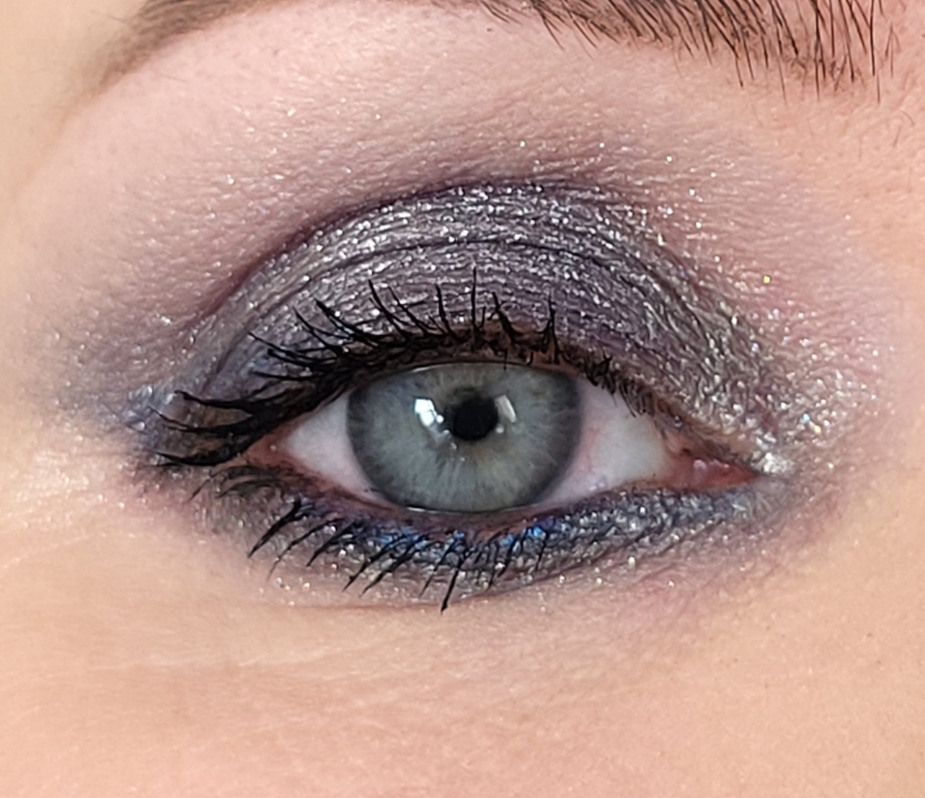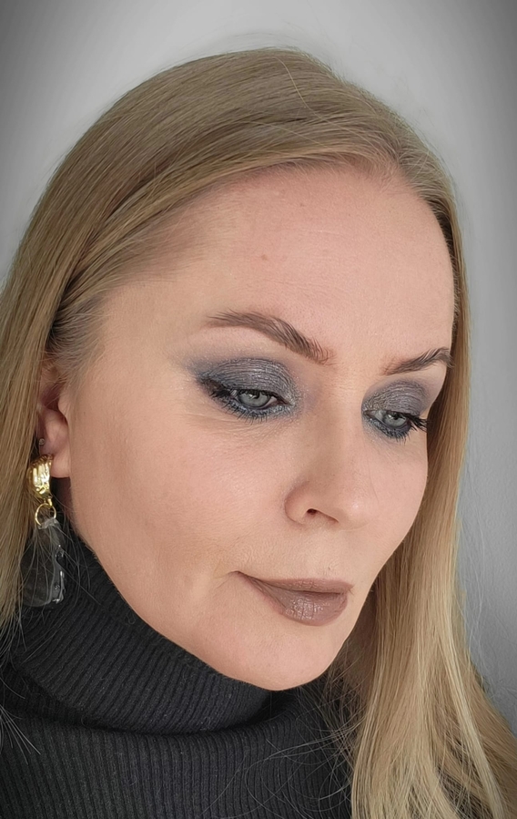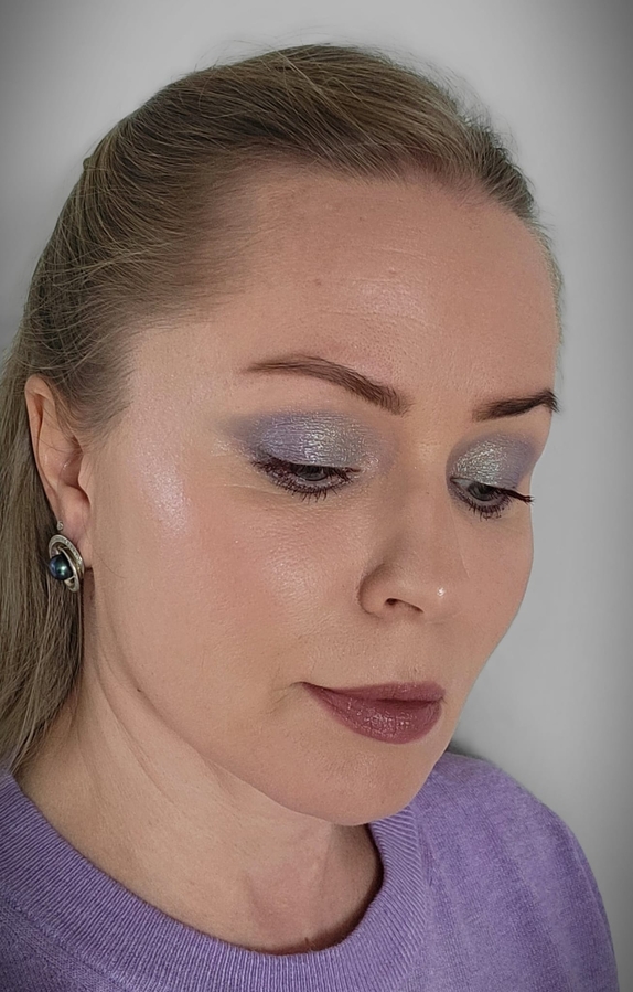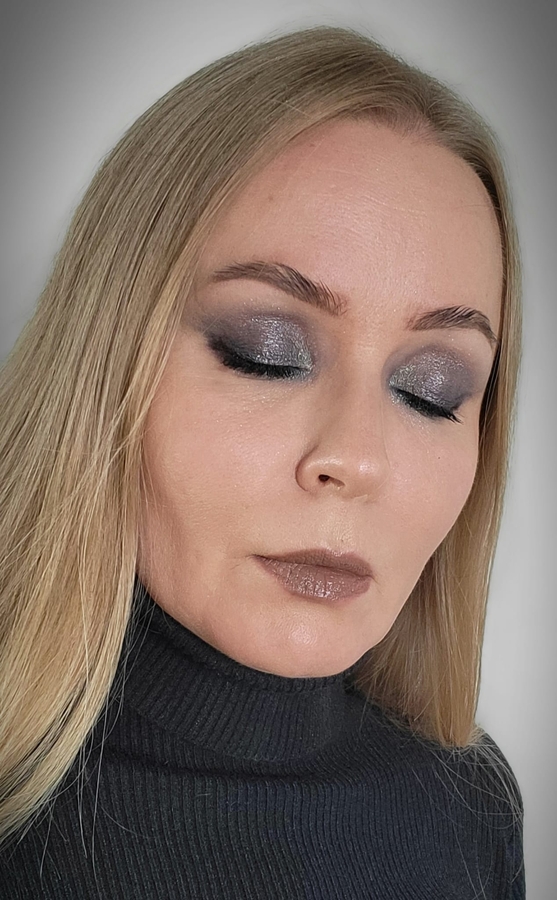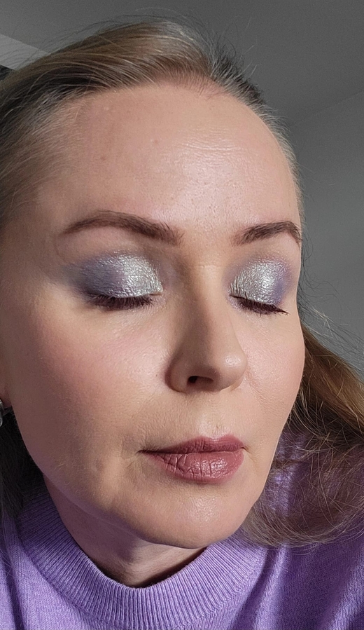 Но за счёт того же шиммера шикарно смотрится на тёмной подложке, для вечерних смоки идеален. В принципе, вечером блёстки на лице уместны, поэтому не буду к нему слишком придираться.