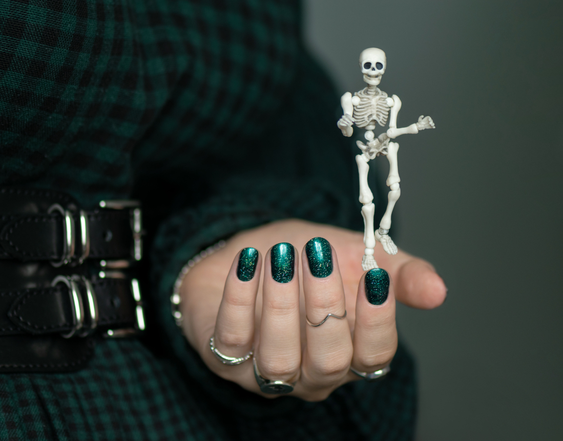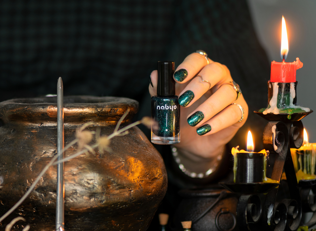Добавлю-ка я сегодня немного ведьминского настроения в ленту!) Покажу красивый глубокий изумрудный лак Nabyo под названием «Нашествие зомби».