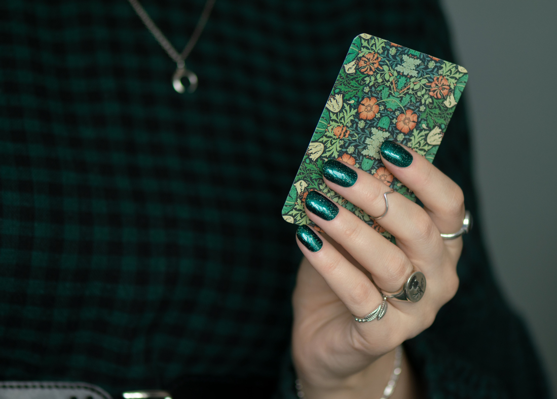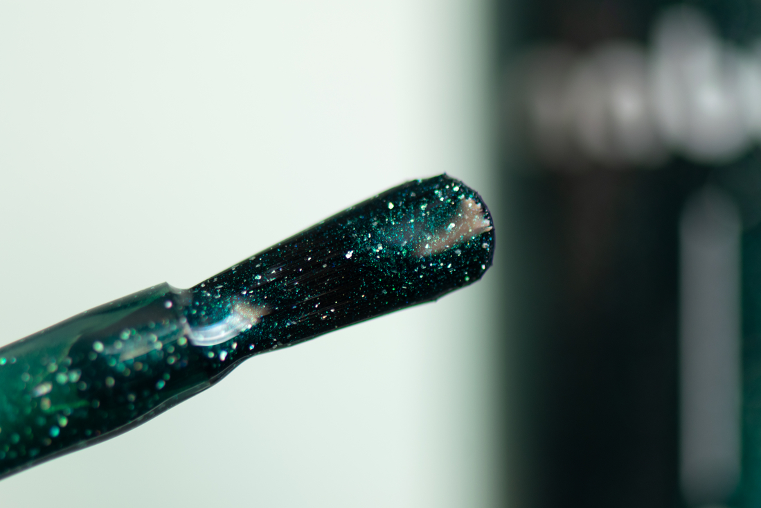 Цвет: темно-изумрудный шиммерграфик с зеленым переливающимся шиммером и хрустальными голографическими хлопьями.