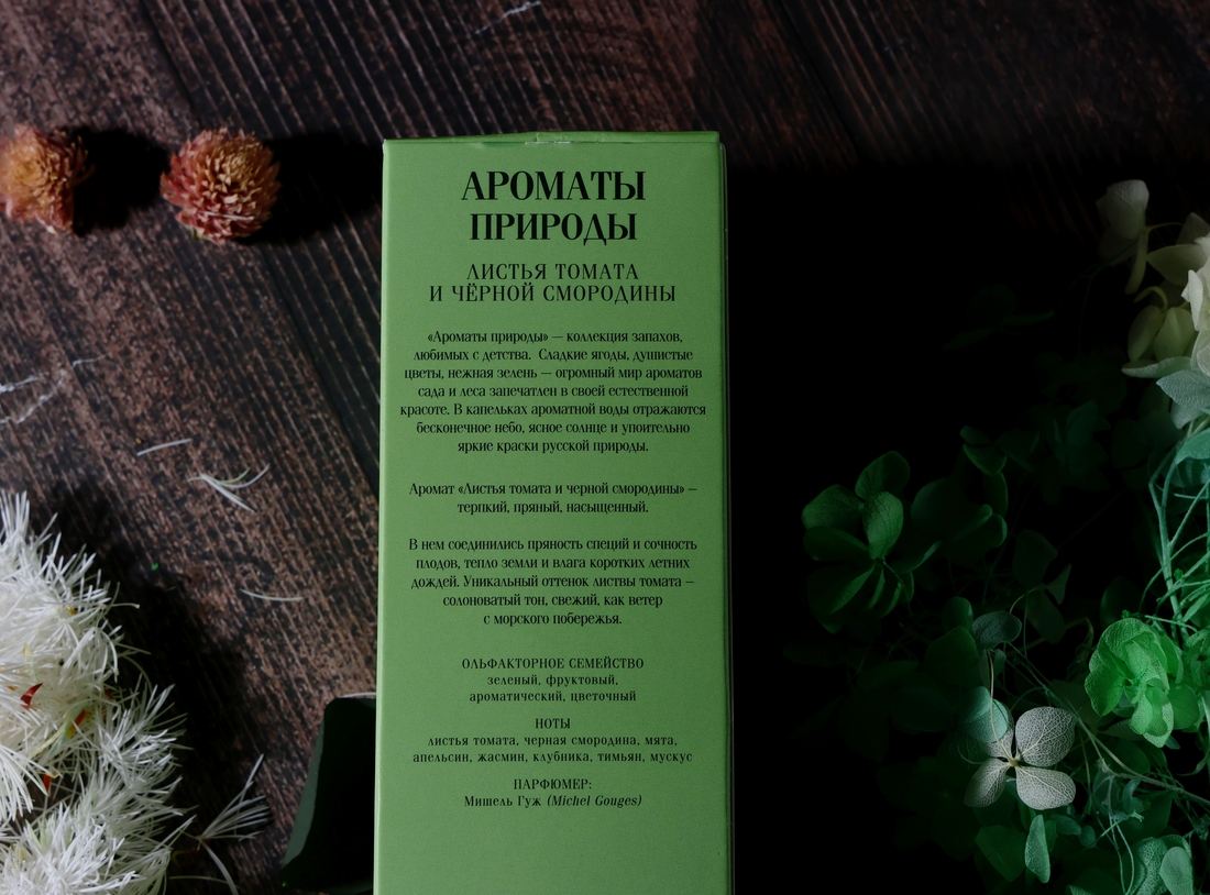 Следующий аромат, о котором хочу рассказать — Листья томата и черной смородины из серии Ароматы природы Брокар. Если прошлый — это холодный чистый июнь, то этот уже набравший силу и жар июль.
